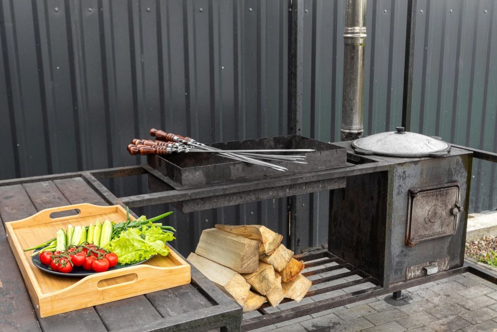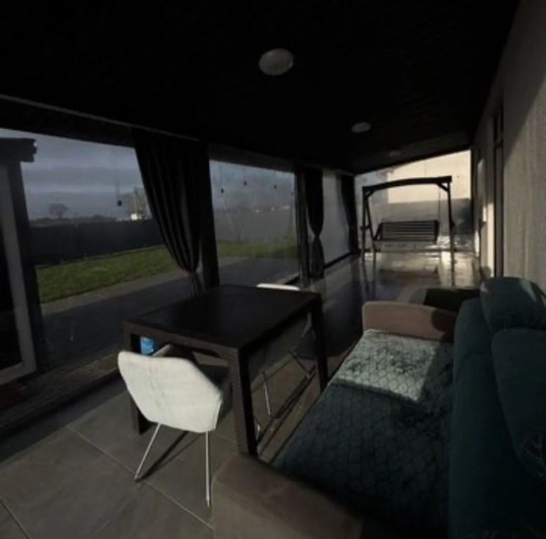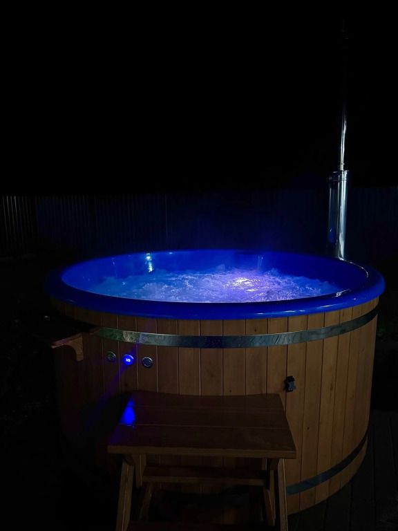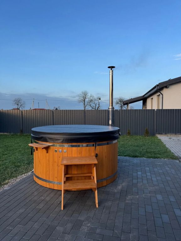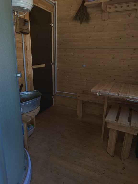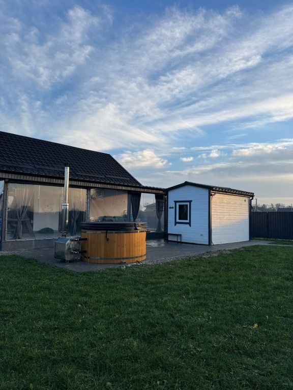 Возможно проживание 4 человек. В частном доме имеется: закрытая терраса, купель с аэромассажем и хромотерапией, баня с душевой и горячей водой, крытая мангальная зона с печью, мангалом, шампурами и казаном, качели.