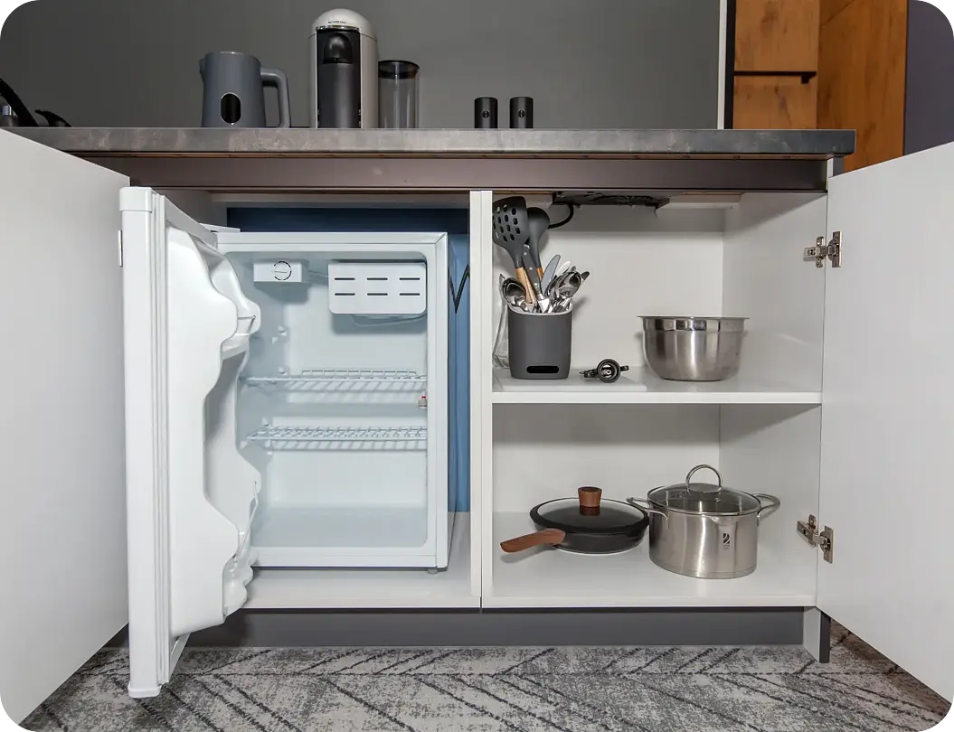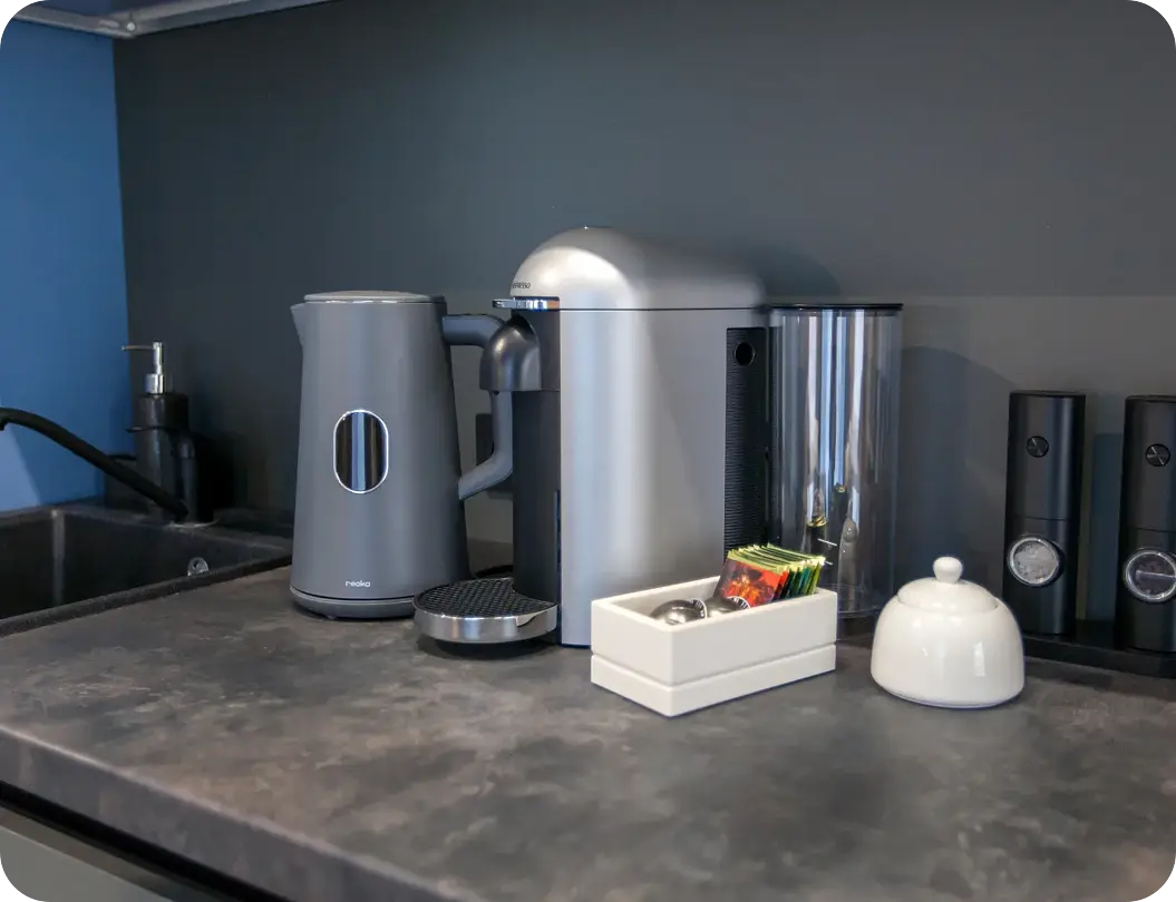 Кухня оснащена всем необходимым для приготовления пищи. Здесь можно сварить ароматный кофе или создать кулинарный шедевр, наслаждаясь каждым моментом своего пребывания.