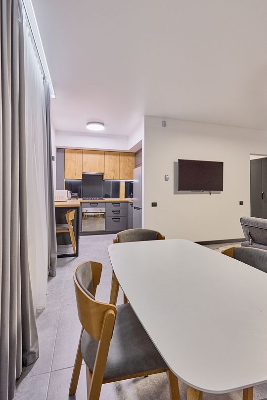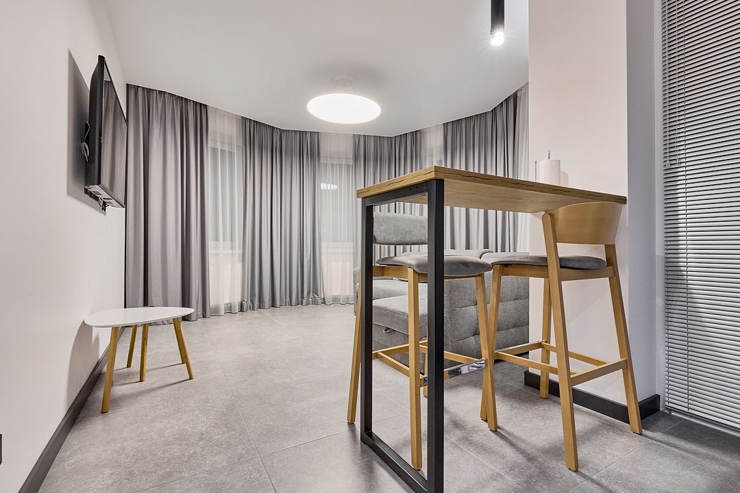 Апартаменты размещаются в современном многоэтажном здании, всего в 500 метрах от побережья Балтийского моря и недалеко от живописного парка. В отеле предлагаются комфортные однокомнатные и двухкомнатные номера, которые могут разместить от 2 до 4 гостей. В каждом номере стильный интерьер, собственная полностью оборудованная кухня и ванная комната с душем. Среди удобств — стиральная машина и плазменный телевизор.