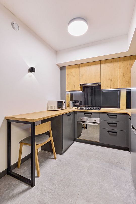 Гостиная (раскладной диван), спальня (1 двуспальная кровать), собственная кухня, ванная комната, балкон, телевизор с плоским экраном, шкаф, бесплатный Wi-Fi.