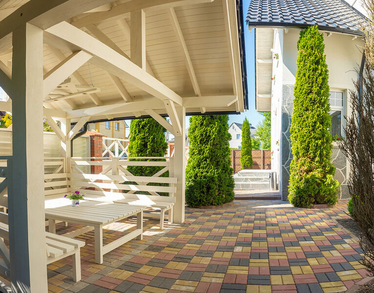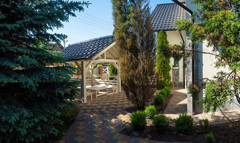 Для отдыхающих во внутреннем дворике организована зона барбекю с мангалами, также в распоряжении гостей банный комплекс с парилкой, сауной и бассейном, где можно отдохнуть или расслабиться после активного дня.