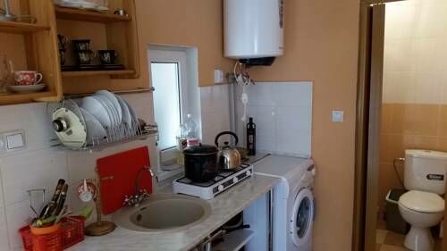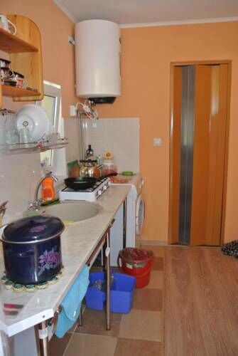 На общей оборудованной кухне проживающие самостоятельно готовят себе покушать. В нескольких минутах ходьбы расположен продуктовый магазин и кафе с русской кухней.