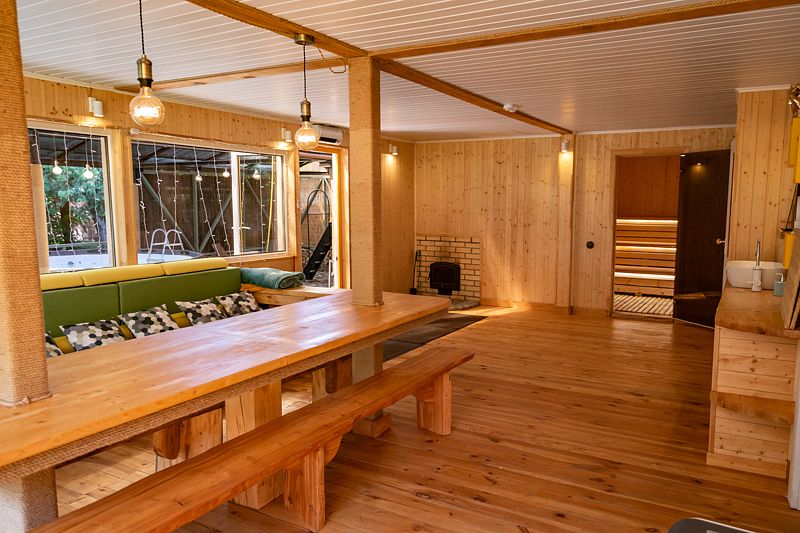 - просторный банный комплекс с дровяной печью и сибирским чаном на дровах;