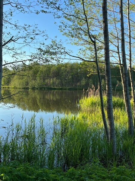 Усадьба расположена всего в 100 метрах от Красного леса, позволяет полюбоваться красивейшими пейзажами и посетить множество интересных мест, включая арочный мост в посёлке Токаревка.