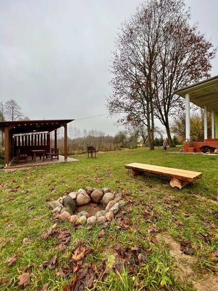 В распоряжении гостей большая беседка с мангалом, уютная терраса, а также камин, который создаст особую атмосферу вечерних посиделок. Для удобства проживающих в доме есть вся необходимая бытовая техника: холодильник, микроволновая печь, тостер, чайник, стиральная машина, телевизор, фен, а также высокоскоростной интернет. Постельное белье, полотенца и посуда также предоставляются.