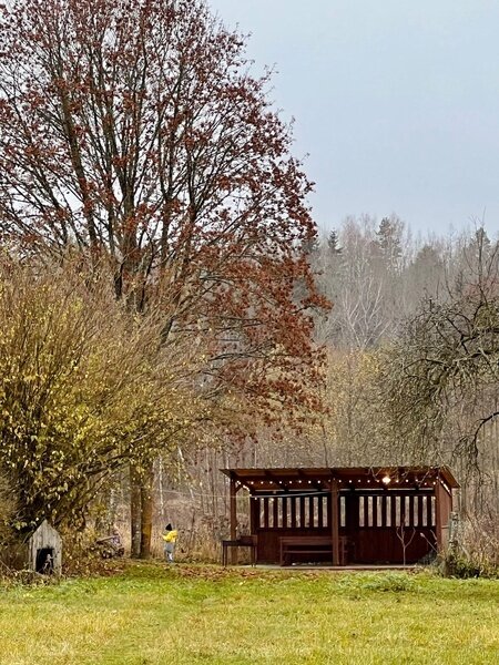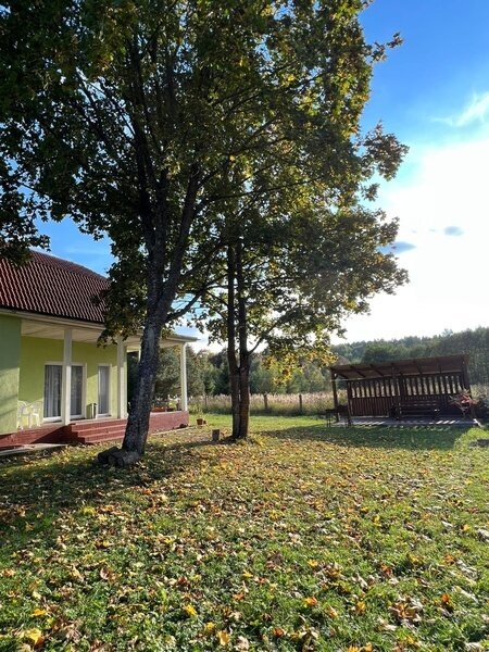 Семейный отдыхДостоинстваКрасивое тихое место для отдыха в дали от цивилизации. Гостевой дом большой, 150 квадратов, места всем хватило. Есть беседка с мангалом. Озера с рыбалкой, хороший улов получился. Отсюда удобно добираться в Красный лес и окрестности. Приедем еще обязательно.
