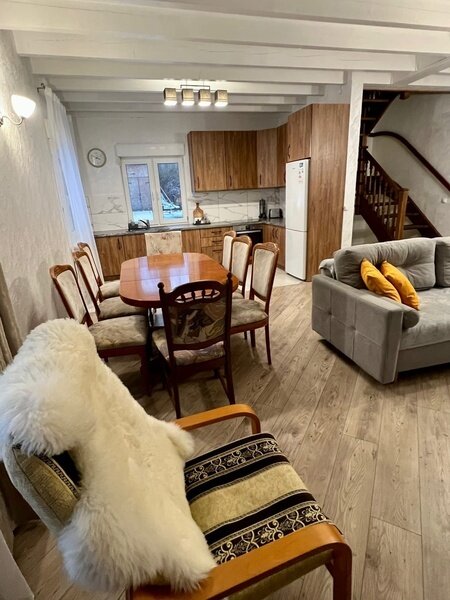 Данный дом отличается просторностью, светлостью и уютной атмосферой. Все здесь новое и обустроено для максимально комфортного проживания компанией до 8-10 человек.