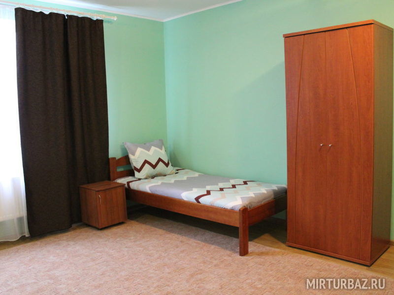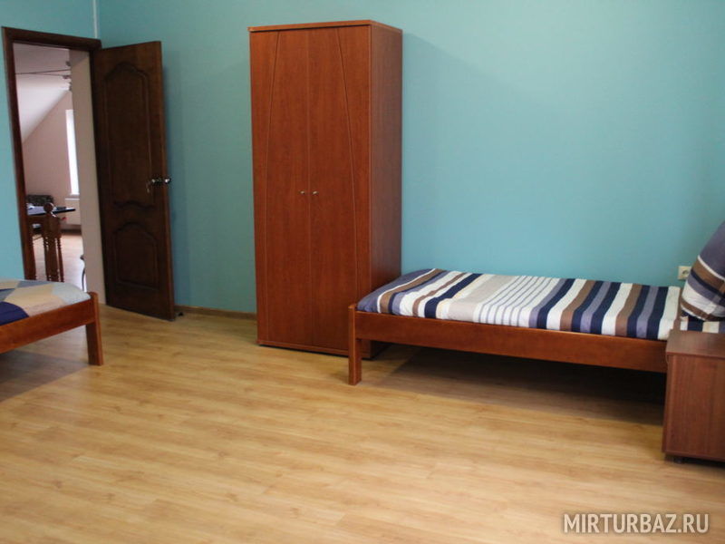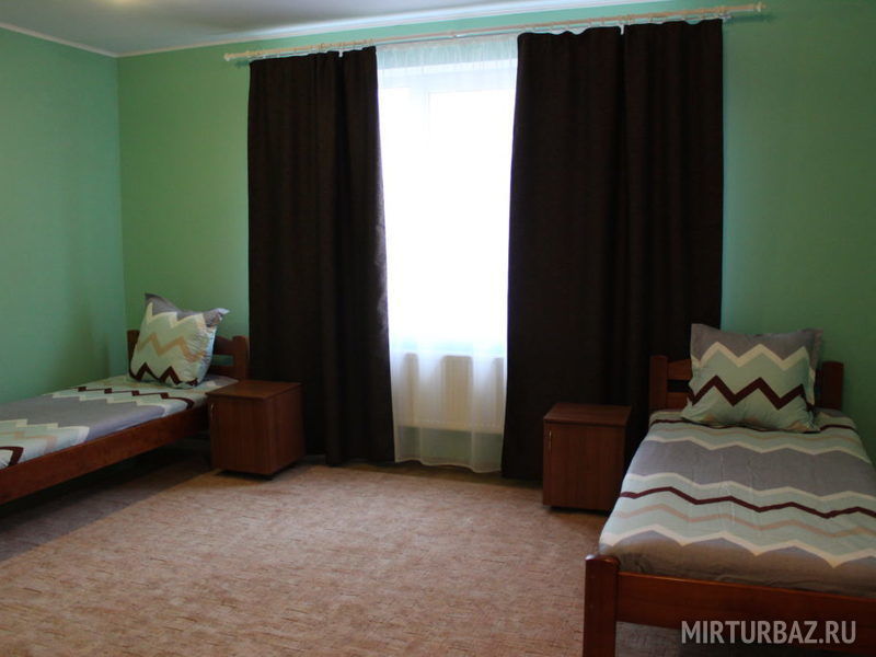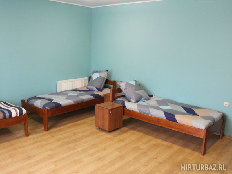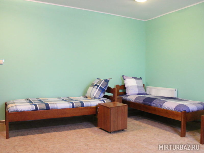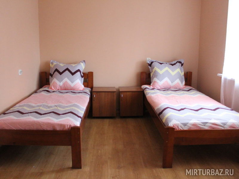 В гостевом доме есть двухместные и четырехместные номера. В каждом из них отдельные односпальные кровати, гардероб, ковровое покрытие.