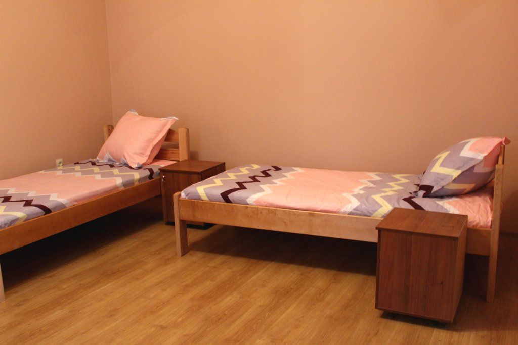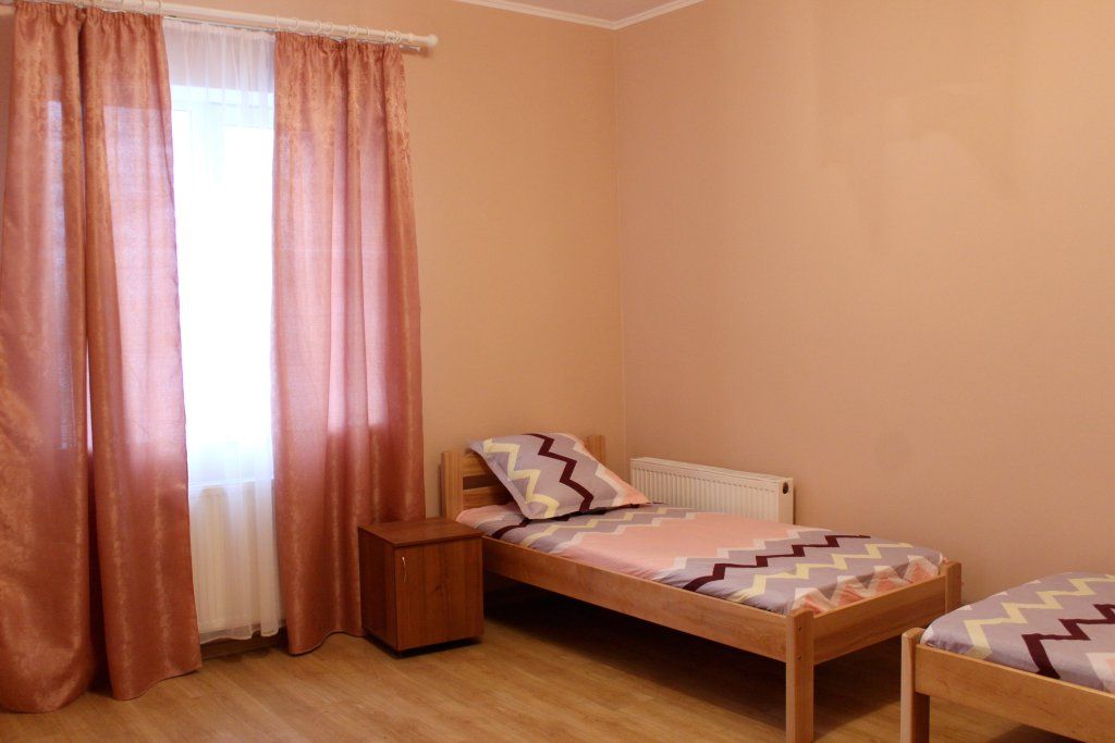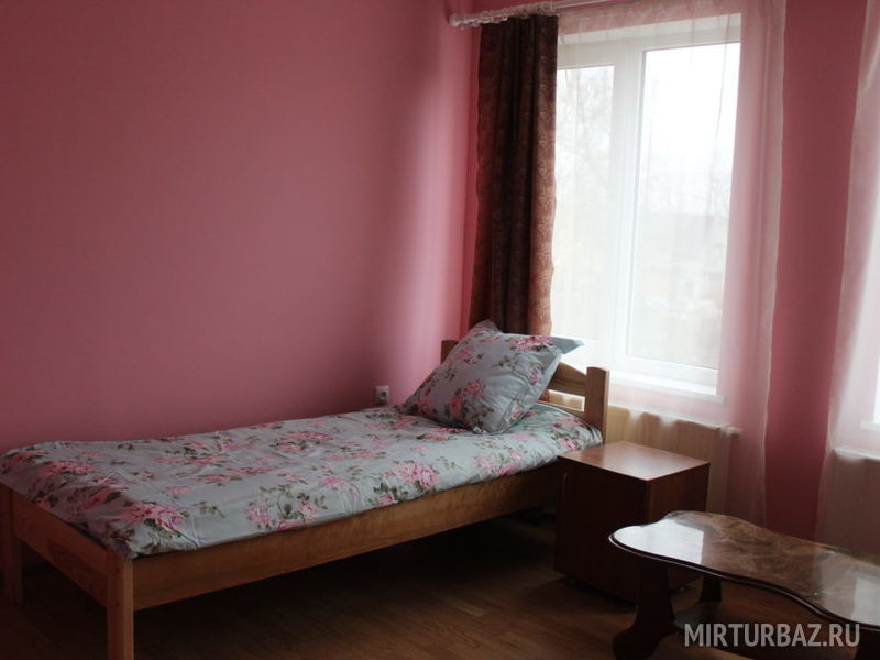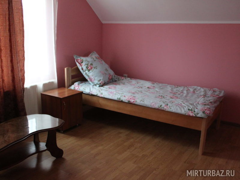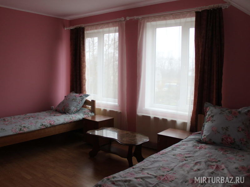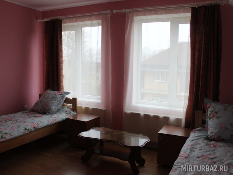 В гостевом доме есть двухместные и четырехместные номера. В каждом из них отдельные односпальные кровати, гардероб, ковровое покрытие.