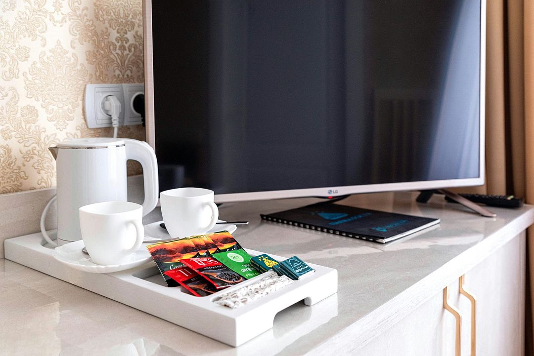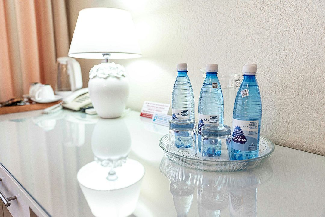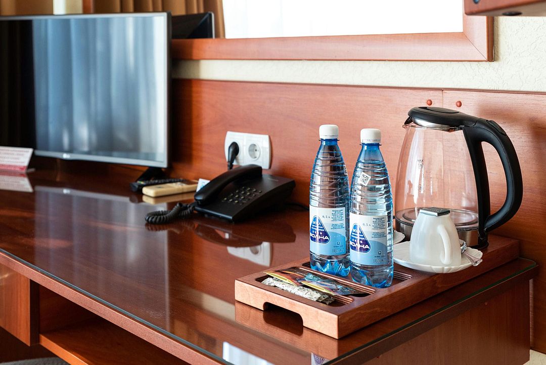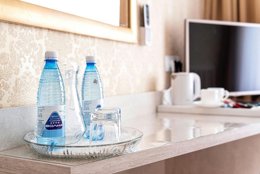 Элегантный просторный трехкомнатный номер, одинаково комфортный как для работы и проведения деловых встреч, так и для отдыха. В номере – гостиная, спальная комнаты, кабинет, два санузла, балкон.