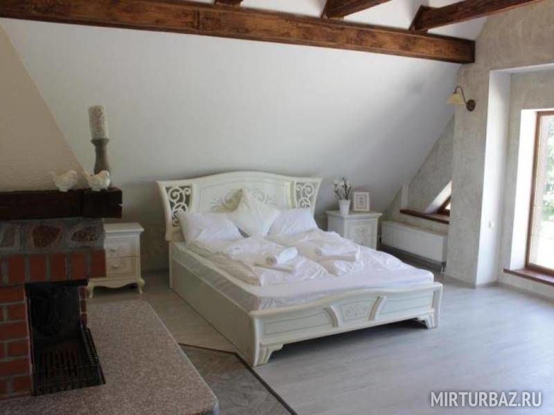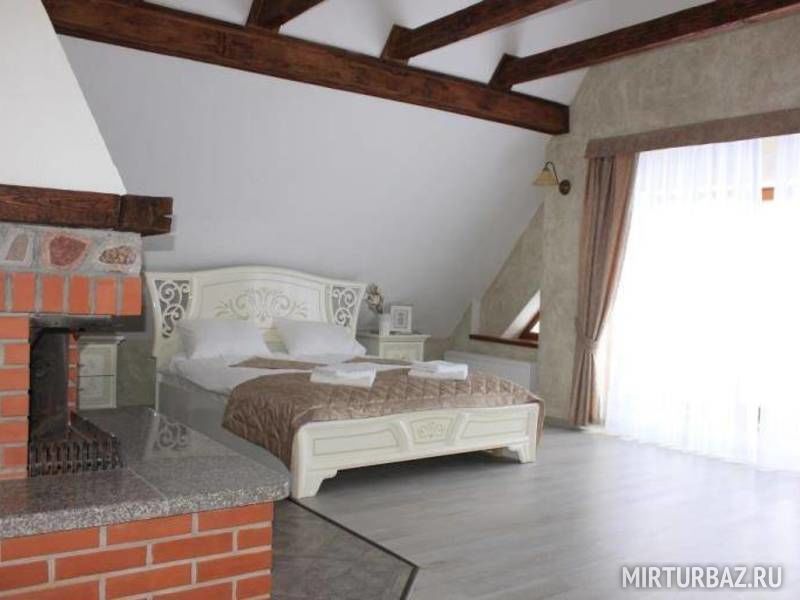 Номер с хорошей кроватью и камином, всё чисто.