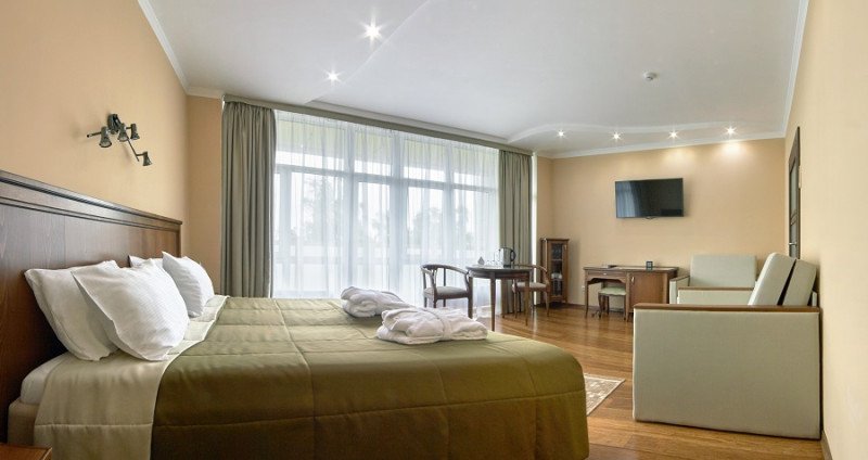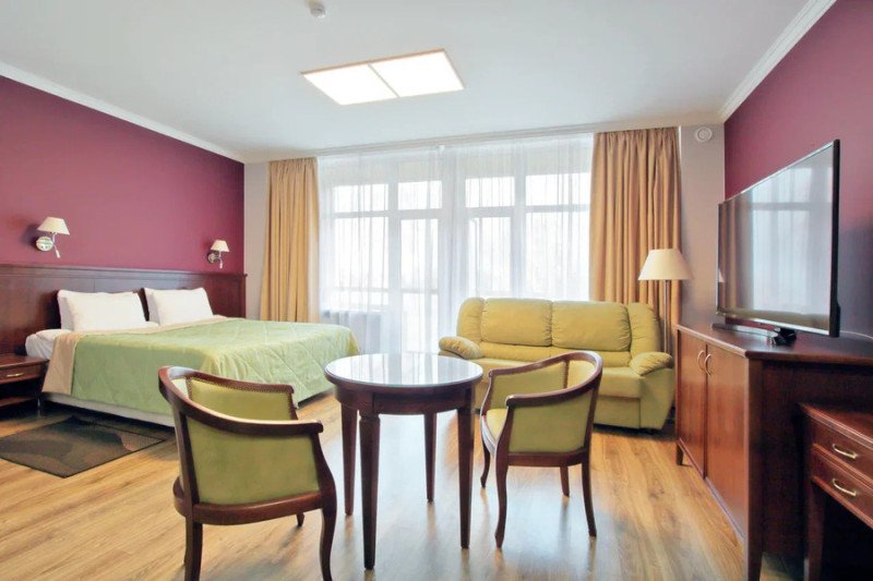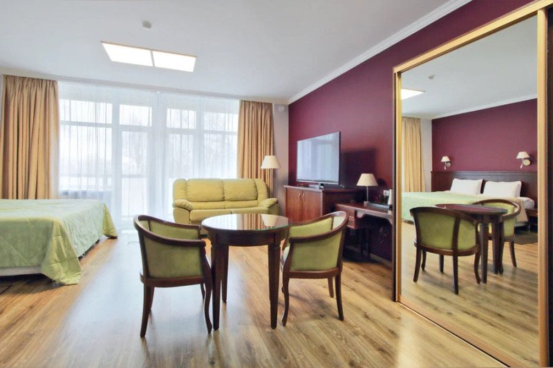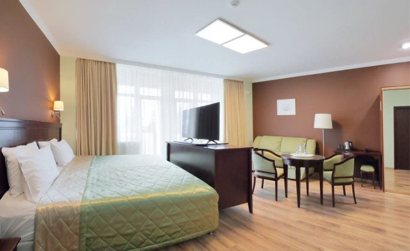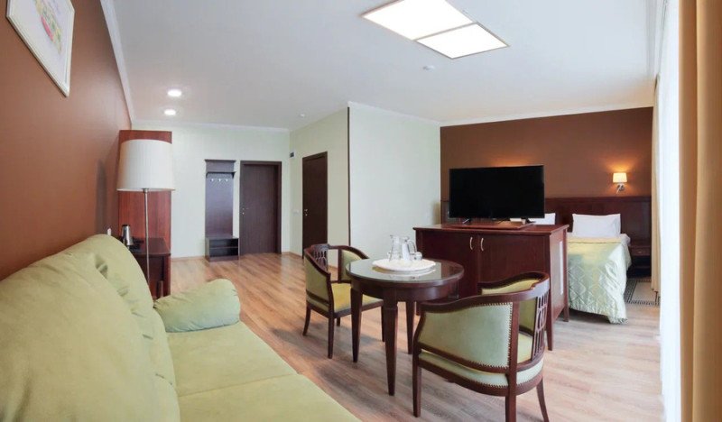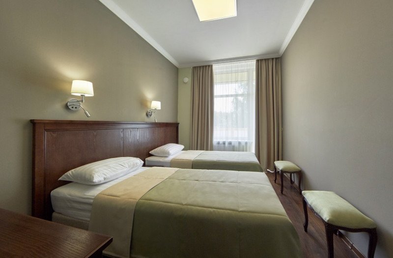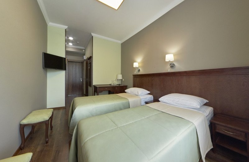 В номере две раздельные кровати, раскладной диван или кресло, в зависимости от номера. Собственная ванная комната со всеми удобствами (душевая кабина, туалет). Номера могут отличаться при заселении.