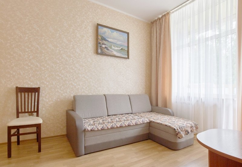 Жилой фонд санатория включает два спальных корпуса: пятиэтажный корпус No1 и трехэтажный корпус No2, расположенные всего в 30 метрах друг от друга. Номера различаются по категориям: от эконом-вариантов до двухуровневых апартаментов. Каждый номер оборудован всем необходимым: мебелью, телевизором, а также санузлом с ванной или душевой кабиной, феном и туалетными принадлежностями.