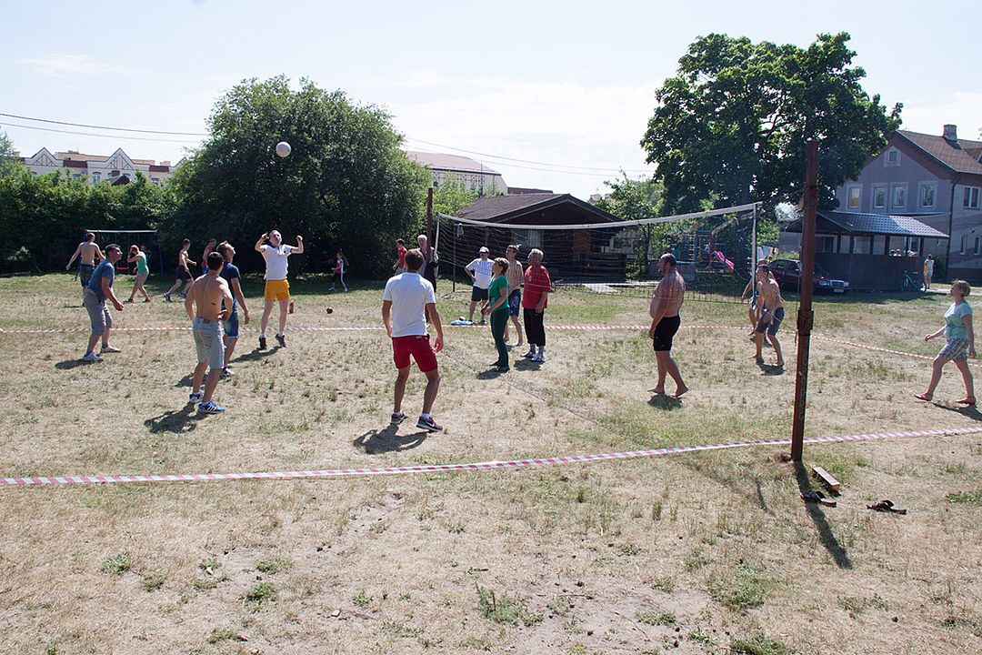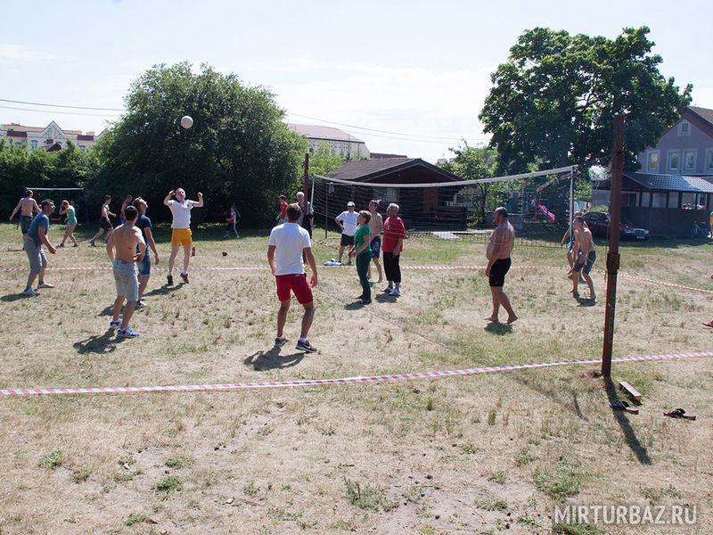 На территории базы отдыха есть отличная песчаная площадка для игры в волейбол, так же установлены ворота для игры в футбол.