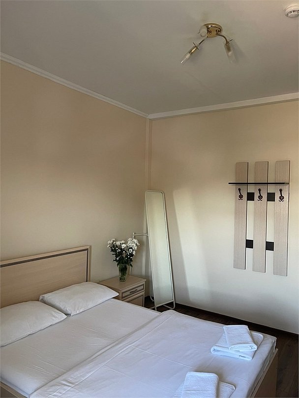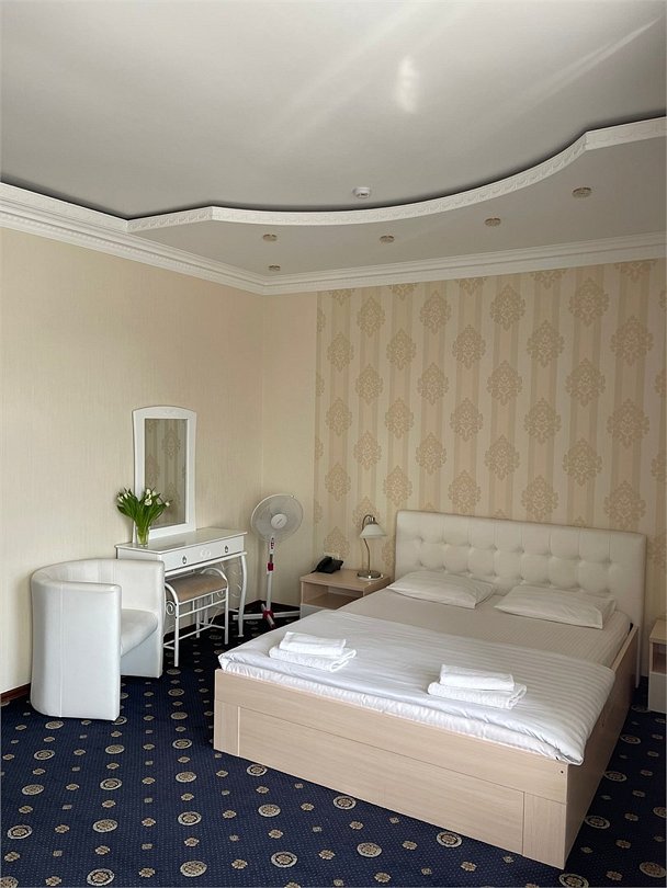 Площадь номера: 22 м2. В номере: двуспальная кровать, шкаф, прикроватные тумбочки, телевизор, Wi-Fi. В ванной: туалет, раковина, душ, набор полотенец.Услуги и удобства