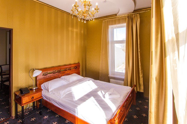 Площадь номера: 55 м2. В номере: две спальни, гостиная, две односпальные кровати и двуспальная кровать, стулья, шкаф, диван, прикроватные тумбочки, журнальный столик, телевизор, Wi-Fi. В ванной: туалет, раковина, джакузи, фен, набор полотенец.Услуги и удобства