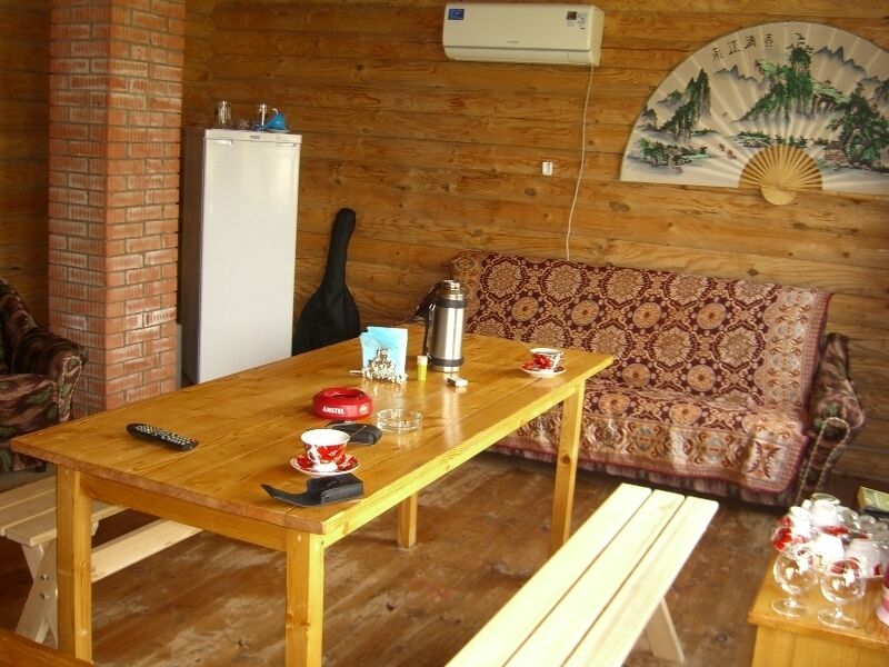 Гостиная с большим столом для посиделок, спутниковое TВ, DVD, караоке, мягкая мебель, камин на дровах, сплит-система;