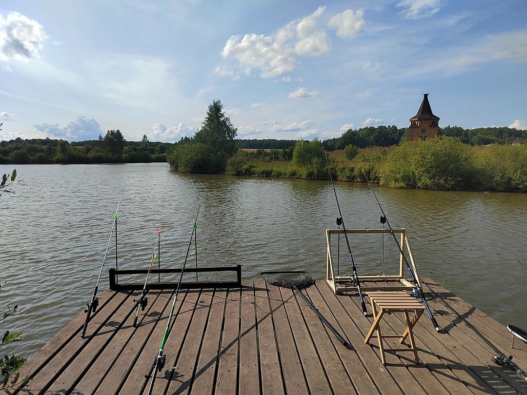 Для любителей рыбалки на базе предлагаются карп, толстолобик, белый амур и сом. На берегу прудов расположены комфортабельные беседки с мангалами, где можно приготовить свежий улов.