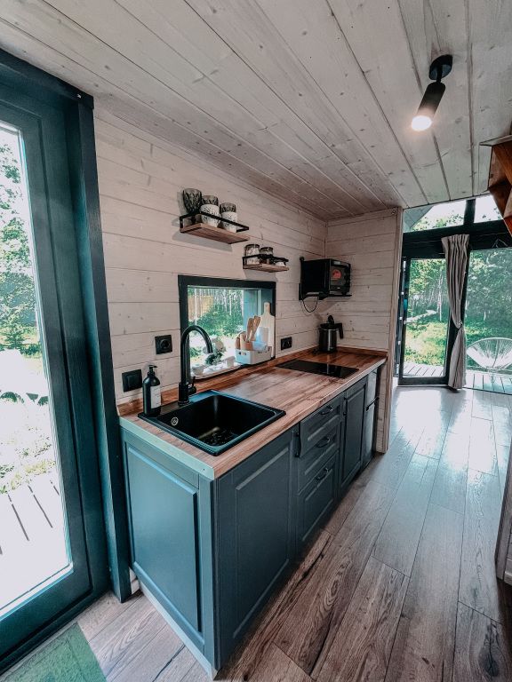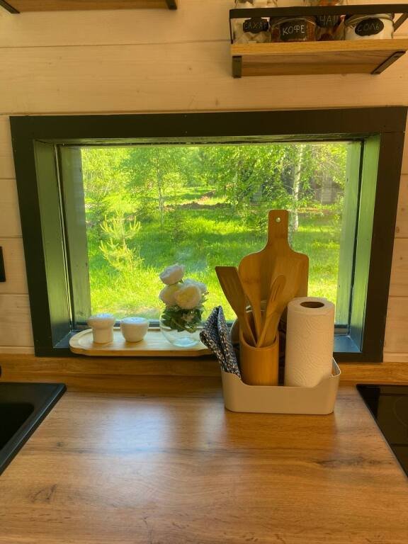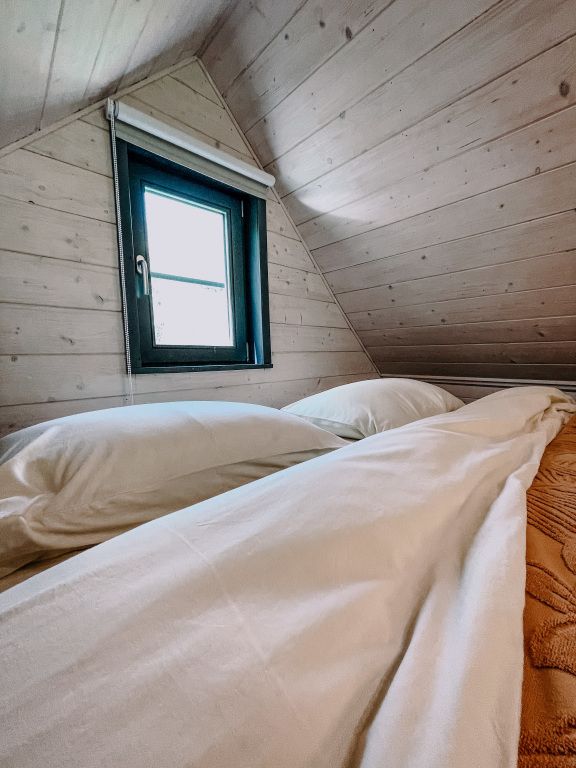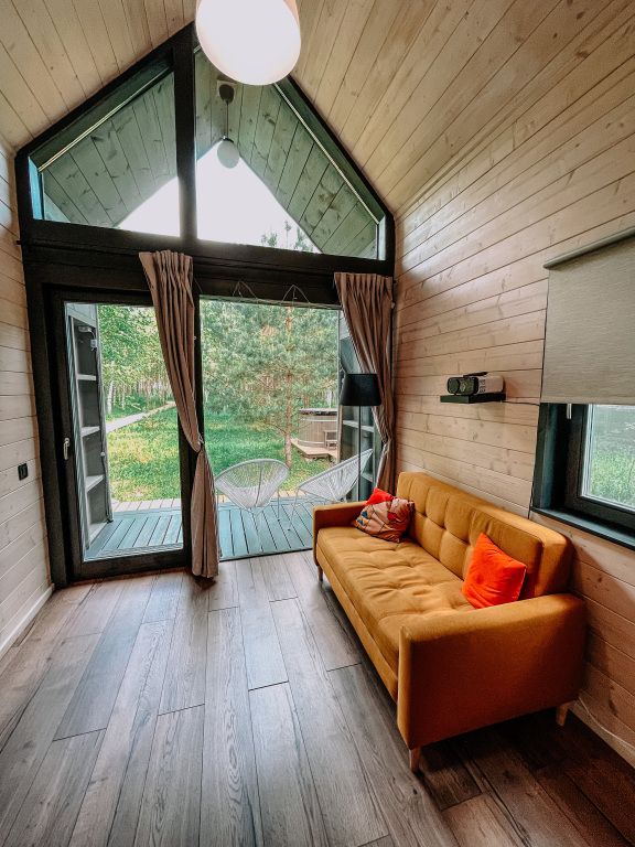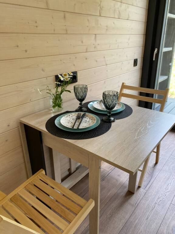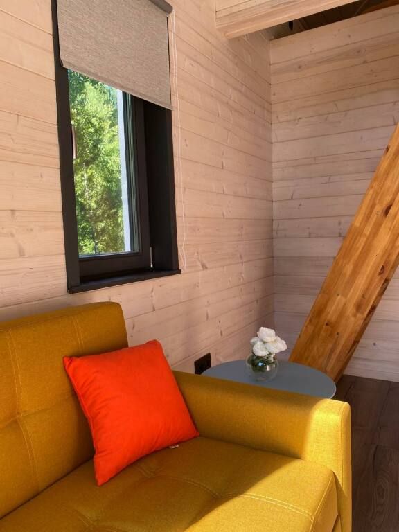 В домике предусмотрены все удобства: кровать двуспальная, диван раскладной 1,5 спальный, кухня со всей посудой, а также мини-печкой, собственный санузел c водой из скважины, мицеллярная вода, ватные диски и ватные палочки; мыло, шампунь, одноразовые тапочки, полотенца предоставляются, а также фен, в домике есть раздвижной стол и раскладные стульчики.