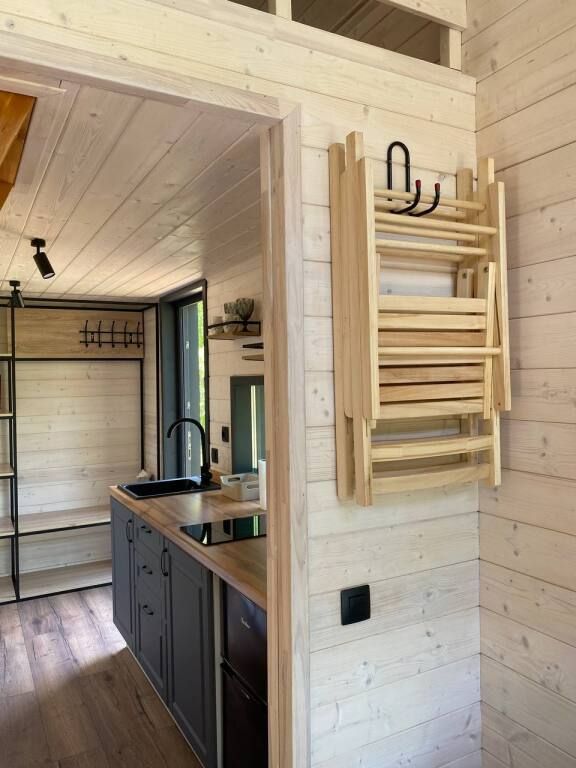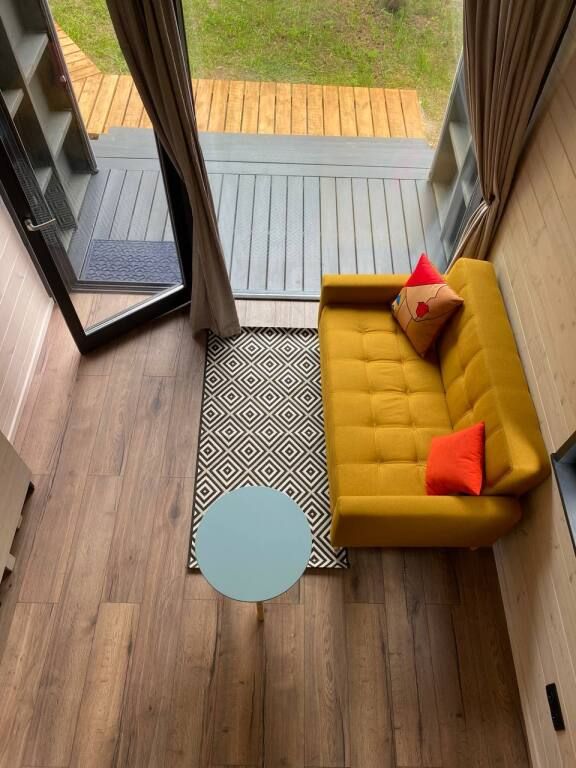 Каждый из трех домиков глэмпинга рассчитан на 3 взрослых или 2 взрослых и двое детей до 7 лет.