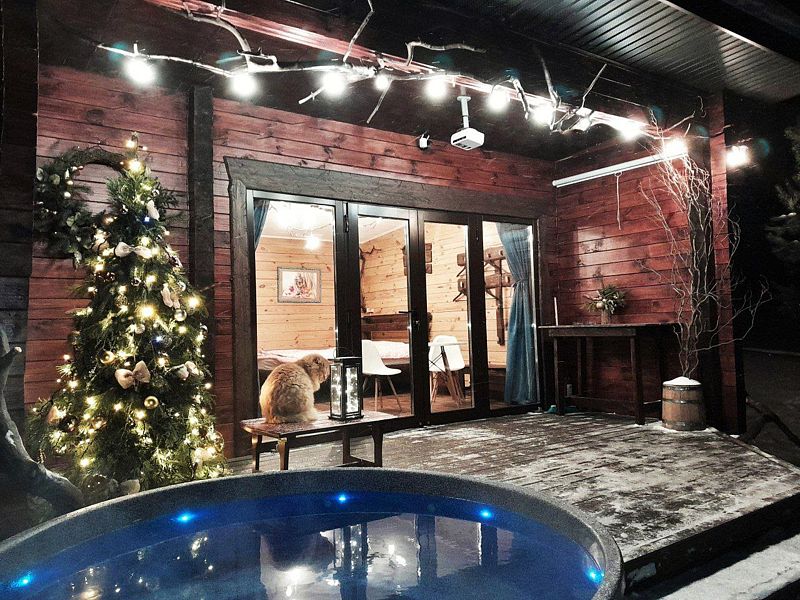 Вам будет доступна большая частная территория с мангалом рядом с домом, кострищем, банным чаном на террасе и прудом поблизости. Прямиком из банного чана можно смотреть кино на проекторе!