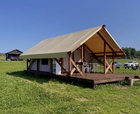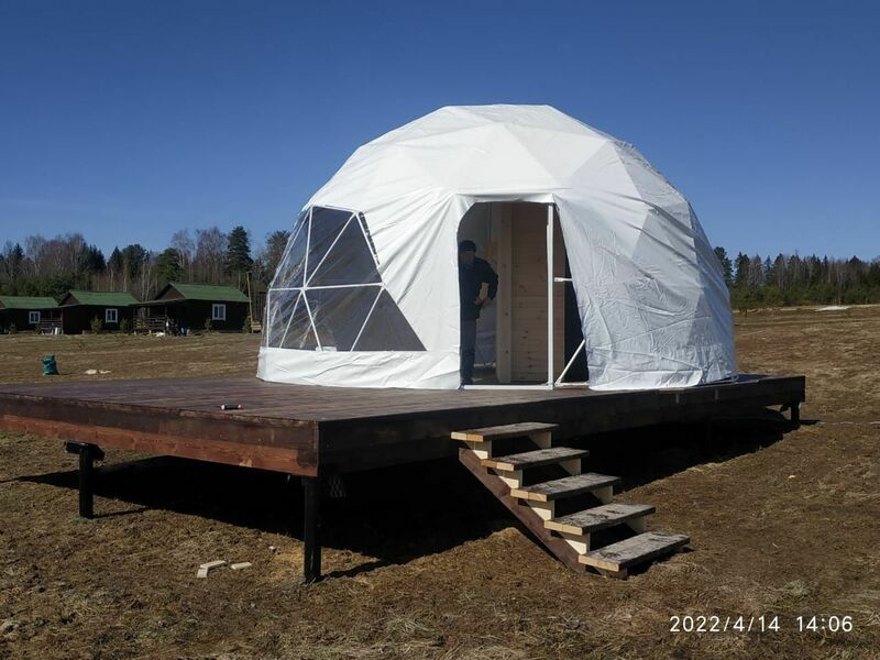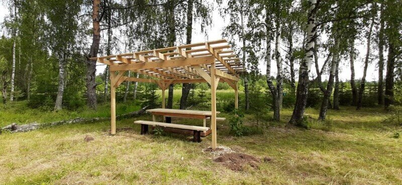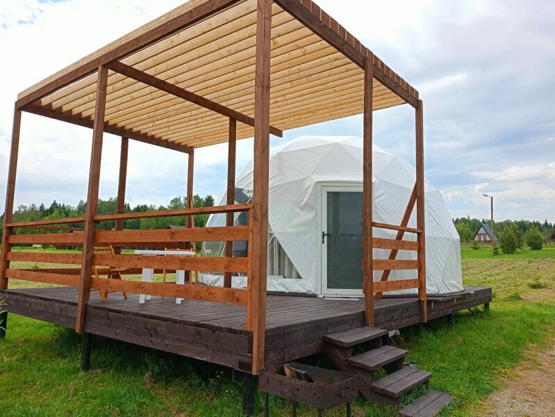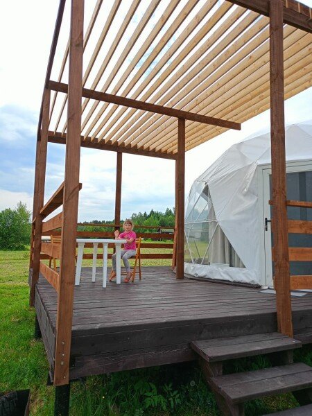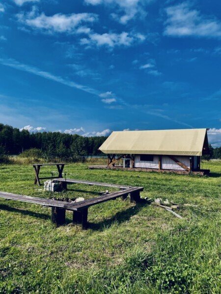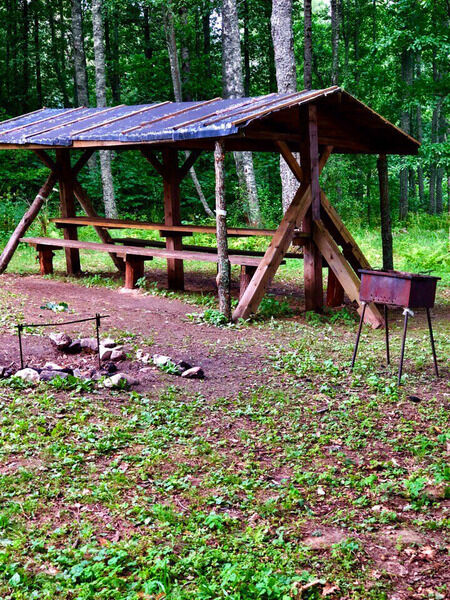 В цену размещения также входит крытая беседка, аренда мангала и запас дров на сутки.