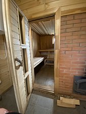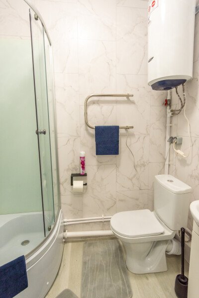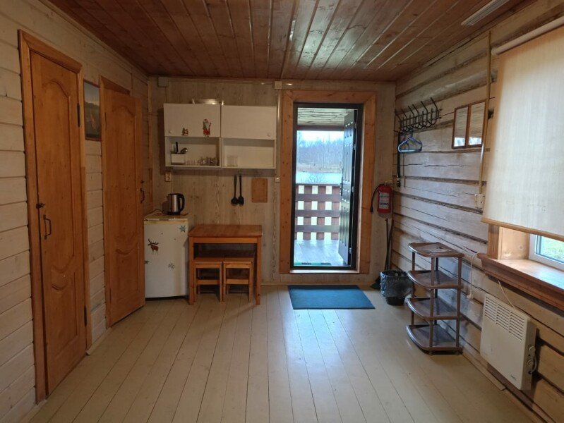 В домике своя кухня, сан-узел с горячей водой в душе, обогреватель.