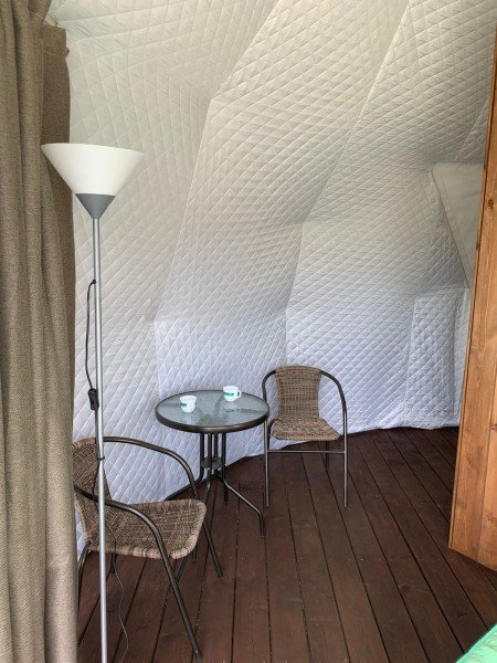 В сфере все удобства (душ, туалет), своя мини-кухня и 4 спальных места: 2 места внизу (кровать 160х200) и 2 места на 2 ярусе (кровать 160х200).