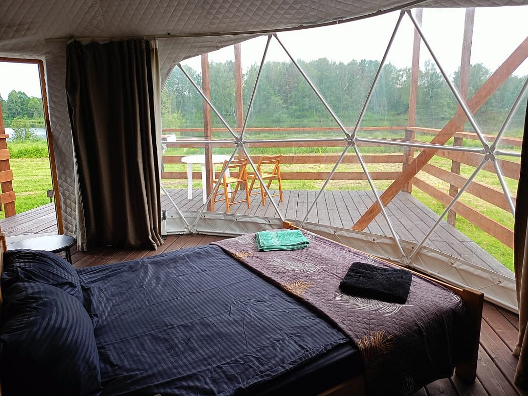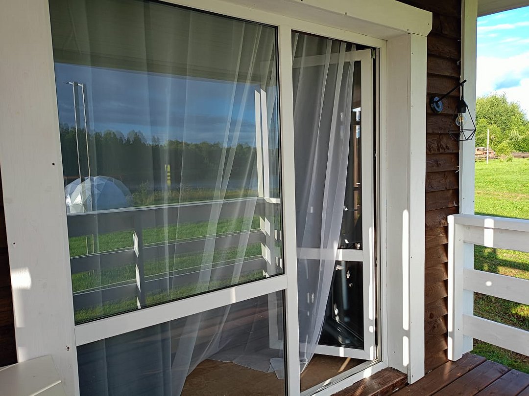 Вариант размещения с 1 двуспальной или 2 односпальными кроватями в мини-отеле с панорамными окнами с видом на озеро. Внутри все удобства: душ, туалет, горячая вода, одноразовая косметика для душа. Также в номере холодильник, чайник, вся необходимая посуда.