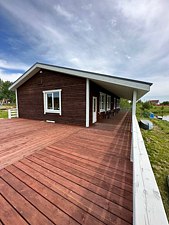 5 местный домик со всеми удобствами (кухня, душ, туалет, горячая вода, отопление). 5 односпальных кроватей.
