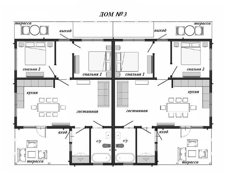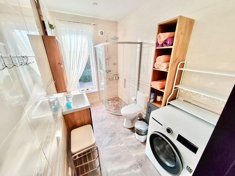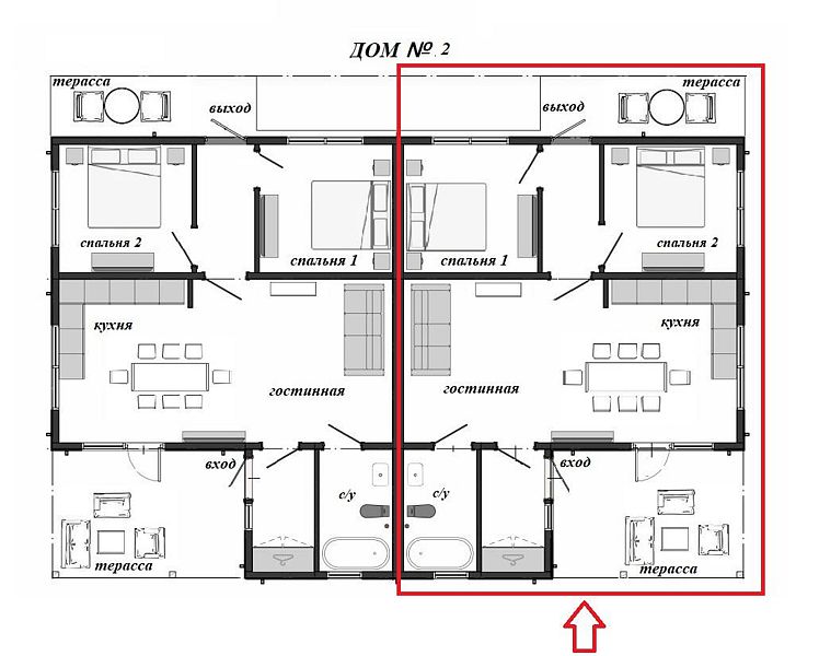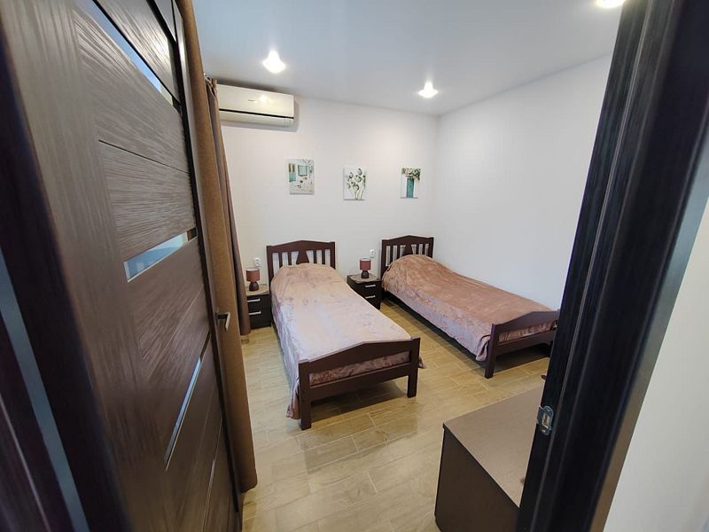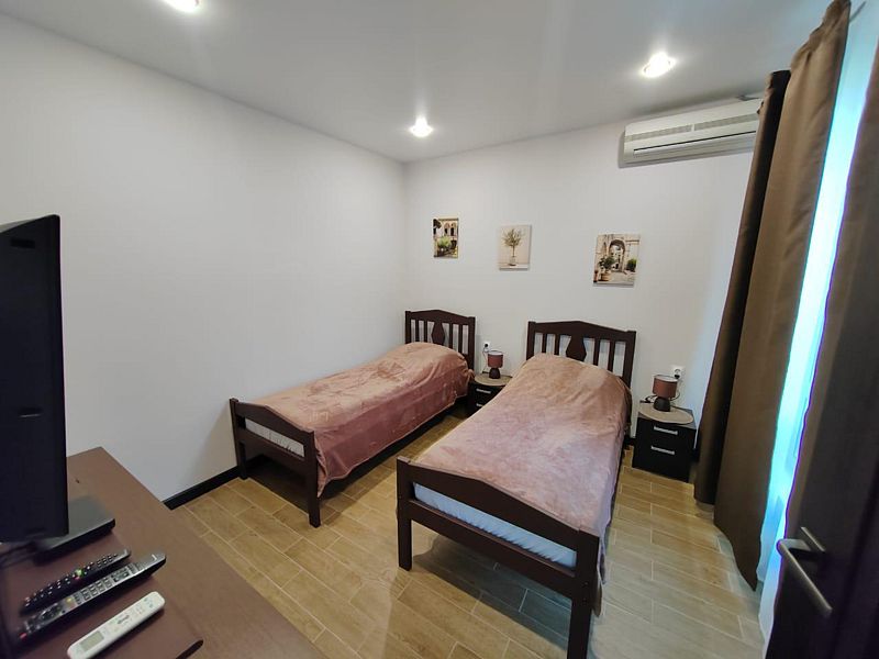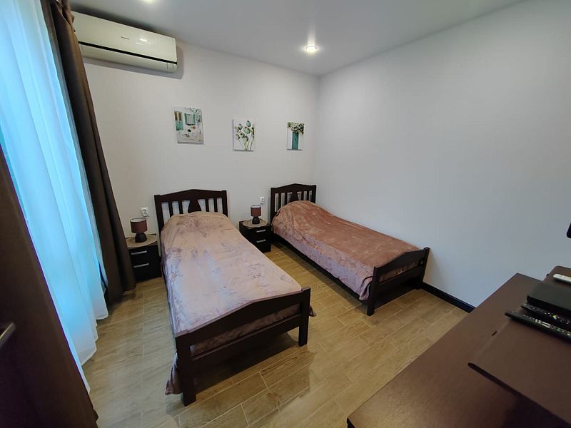 В распоряжении гостей комфортабельный дом, разделенный на две независимые половины. В каждой из них имеются по две спальни, кухня-гостиная, ванная комната и холл. Для удобства отдыхающих установлен кондиционер, телевизор и Wi-F- роутер. В санузле есть фен, стиральная машина, полотенца и туалетные принадлежности. А уютные террасы обустроены уличной мебелью. Также есть возможность аренды дома целиком.