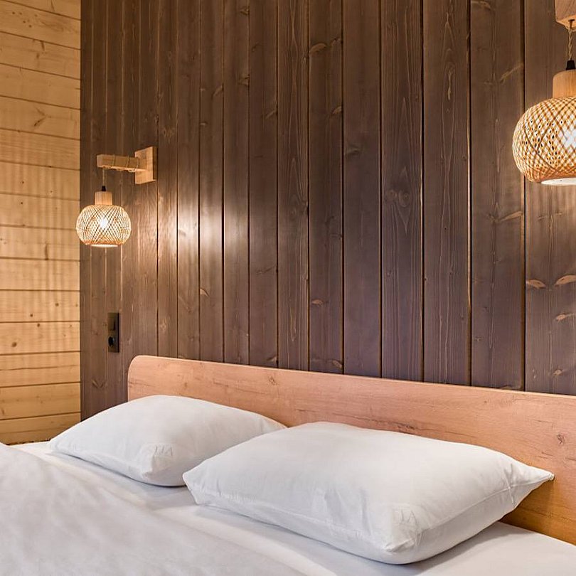 - 2 двуспальные кровати, 1 двухъярусная (нижний ярус — 120х200), раскладной диван