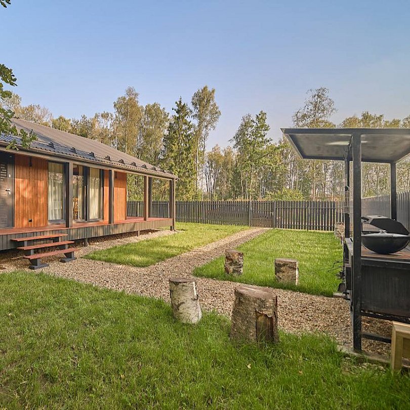 На террасе можно наслаждаться видом на зелень. Здесь можно проводить вечера с ароматом шашлыка из казана на 12 литров. Три парковочных места рядом с домом избавляют от проблем с парковкой.