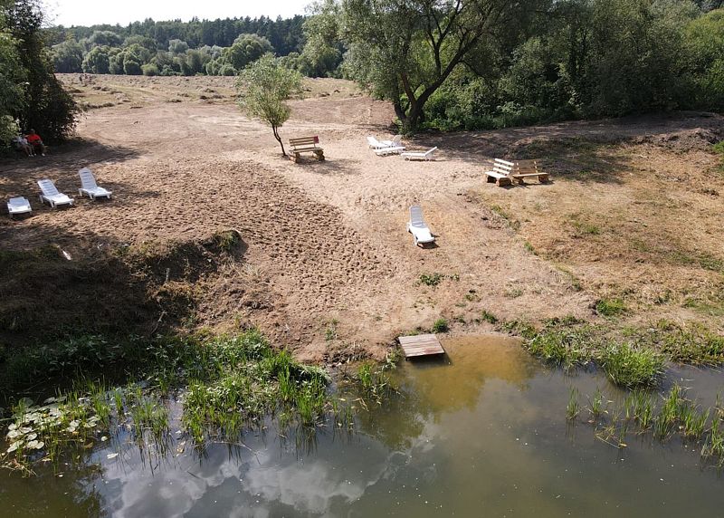 Насыпной песок с лавочками. Красивые виды. За дополнительную плату в аренду лежаки и шезлонги.