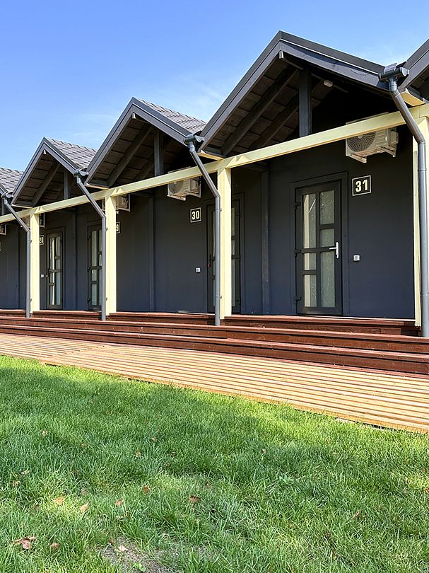 Площадь каждого номера составляет 18 м². Номера находятся в двухэтажных корпусах.