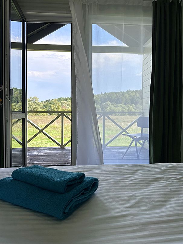 Площадь каждого номера составляет 18 кв.м, а из окон открывается прекрасный вид на поле.