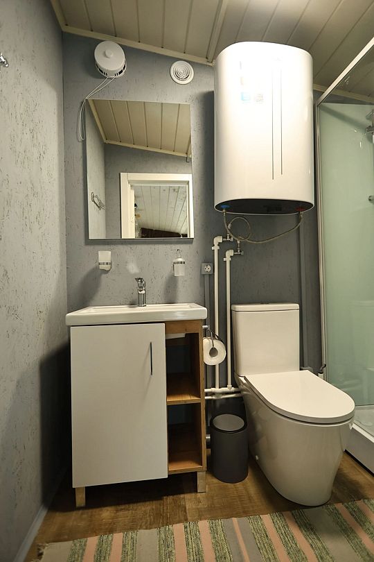 Максимум 4 гостя, в предбаннике есть зона отдыха со столиком, помывочное отделение отсутствует.