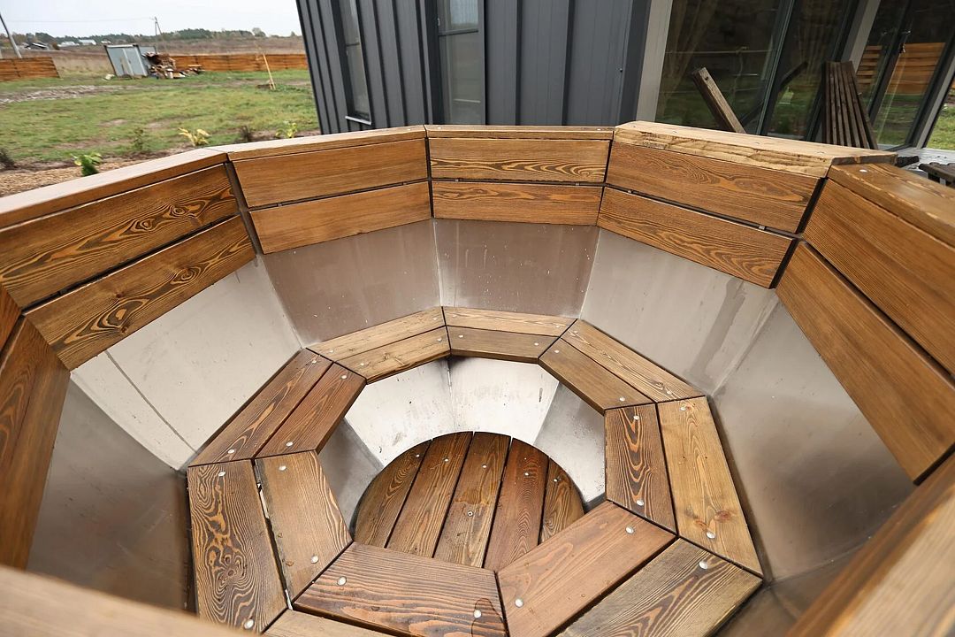 Возле домика есть банный чан.