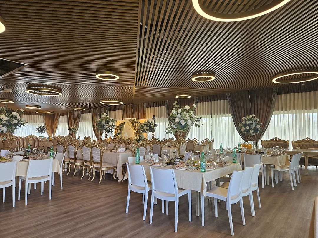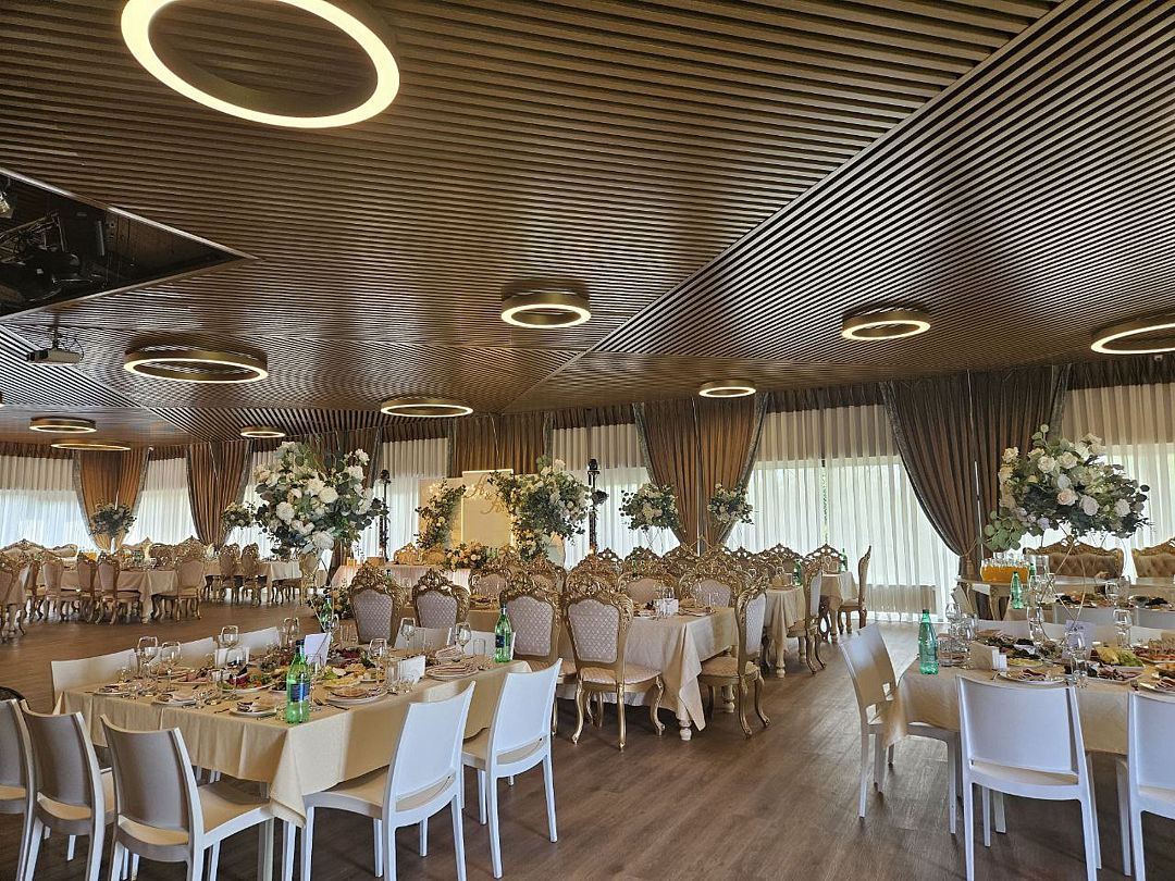 Зал оборудован всем необходимым для проведения всевозможных праздников, корпоративов, мероприятий, банкетов, свадеб, юбилеев, поминальных обедов, конференций, ретритов, тренингов и т. д.