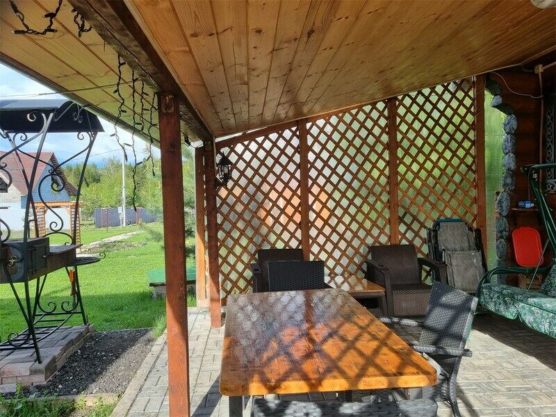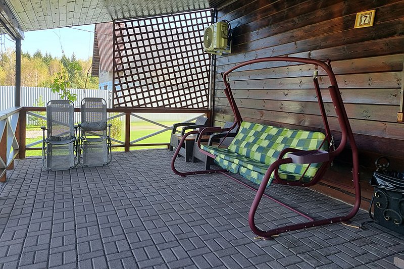 У коттеджа своя просторная терраса и мангальная зона для приготовления шашлыков. Принадлежности для мангала все есть.