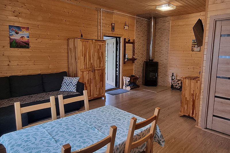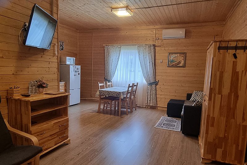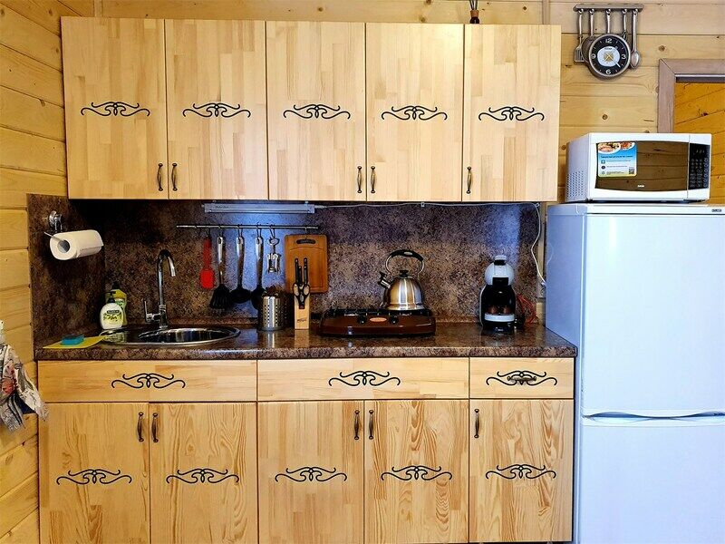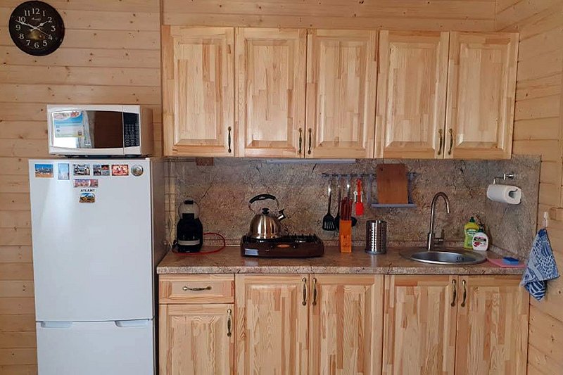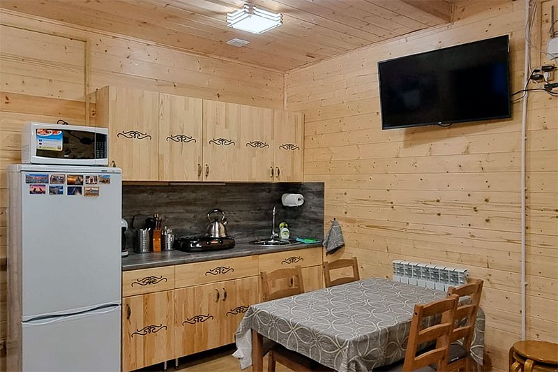 Путешествие с семьейОчень достойно!Даже на взыскательный вкус - очень достойно! Все есть - для приготовления пищи, для бани, для отдыха! Дрова и щепа для мангала и бани в нужном количестве находится в домике! Есть репелленты от комаров и всевозможные принадлежности для душа и бани в домике! Посуда различная и в необходимом количестве! На турбазе тихо, несмотря на то, что домики были заняты. Хозяева готовы помочь. Очень хочется вернуться сюда вновь!