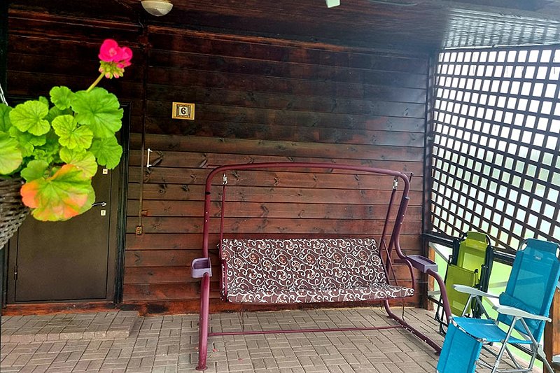 Одна спальня и зал студия с кухней. Просторные. Большая терраса с мебелью и качелями. Укомплектованы всем необходимым для проживания. Отопление, белье, полотенца, тв, интернет, посудомойка, плита, посуда и т.д. Мангал у домика и принадлежности на фото