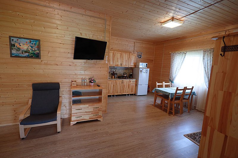 Путешествие с семьейОчень полезно оказаться там в далеко от шумного города. Даже погода не испортила наше настроение.Поехали по рекомендации и не разочаровались. Сервис на высшем уровне! Чистота! Есть все необходимое, начиная от ушных палочек до кастрюль , тарелок…тапочки, вода для гостей…все это мелочи, но уровень высокий. Тишина, никто друг другу не мешает. чистота душевой кабины удивила! Очень гостеприимный хозяин . Территория ухоженная, чистая. Соответствует описанию, фотографиям…. Очень рекомендую и уже планируем следующий отдых, но на дольше.
