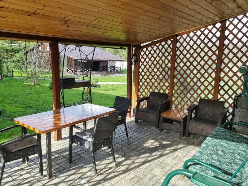 У коттеджа своя терраса и мангальная зона для приготовления шашлыков и стейков.