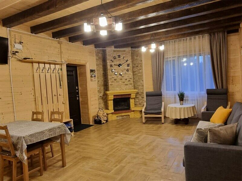 Коттедж оснащен: 2-мя каминами и сауной на дровах, имеется 3 комнаты, 2 спальни, зал, 2-ва сан узла,2 тв. Кухня оснащена всем необходимым для приготовления. Мангал и мангальная зона, решетка и шампура.