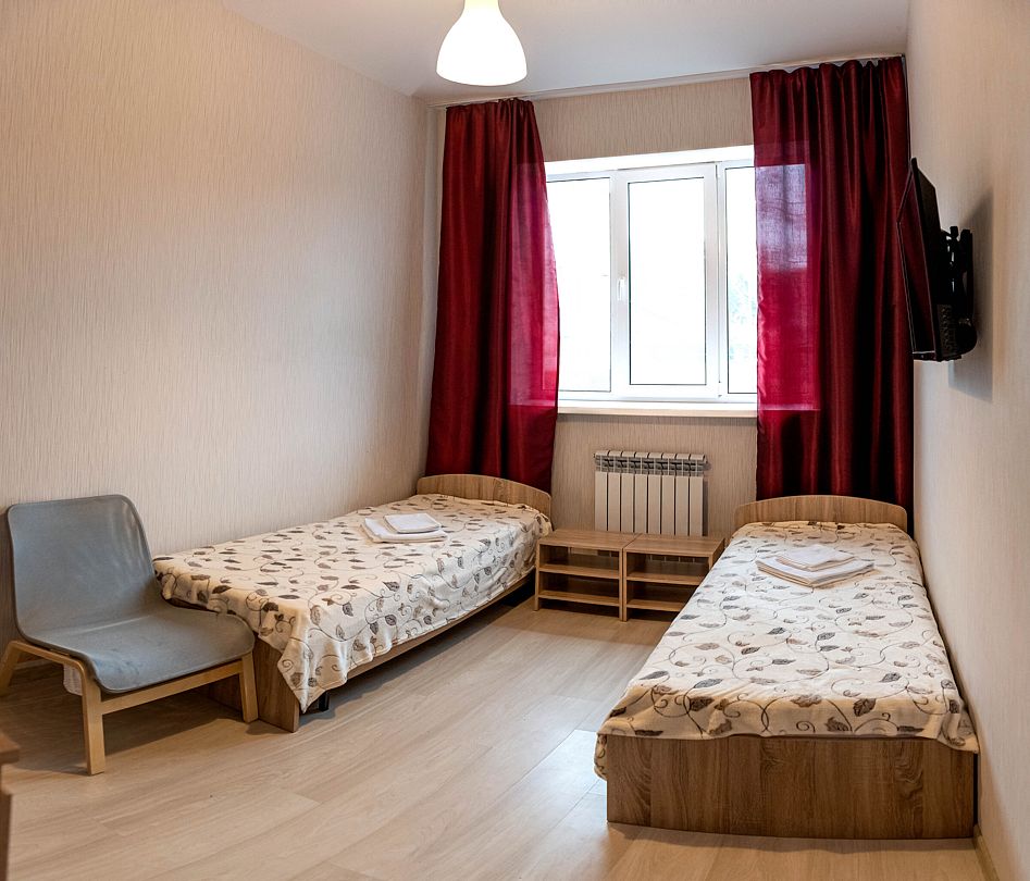 Стандартный двухместный номер, с двумя односпальными кроватями. В номере: шкаф, тумбы, 2 односпальные кровати, телевизор, санузел с ванной комнатой. Дополнительные места в номере не предусмотрены.