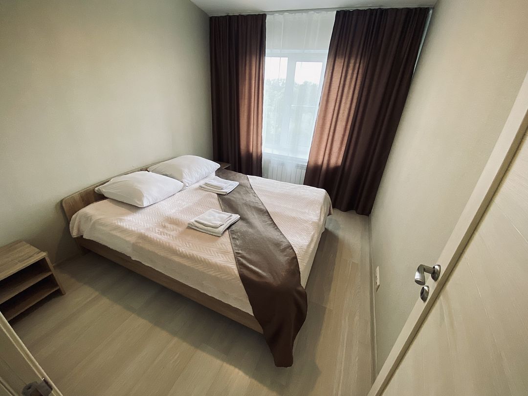 Просторный четырехместный двухкомнатныйномер, оснащен современной мебелью, в одной комнате двуспальная кровать, во второй 2 односпальные (есть возможность сдвинуть).