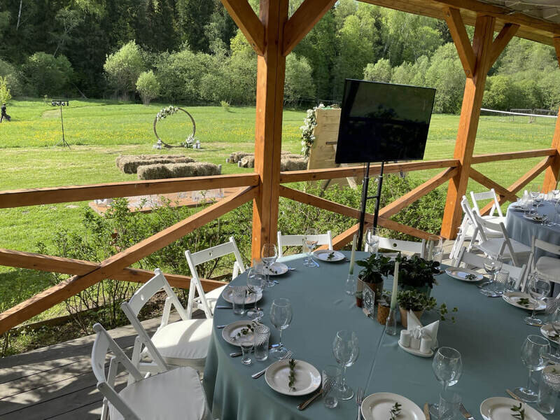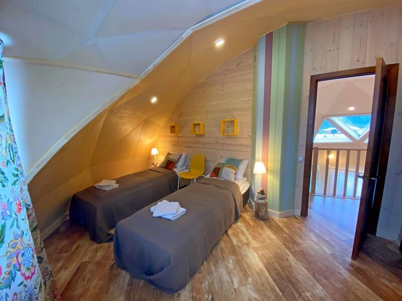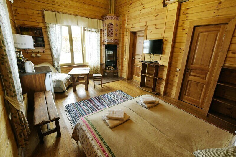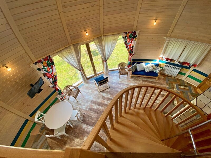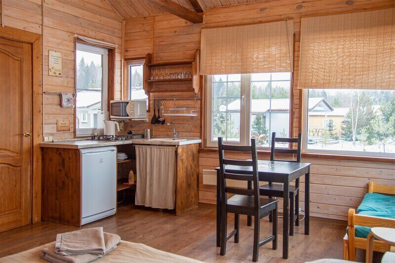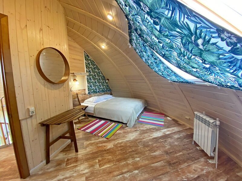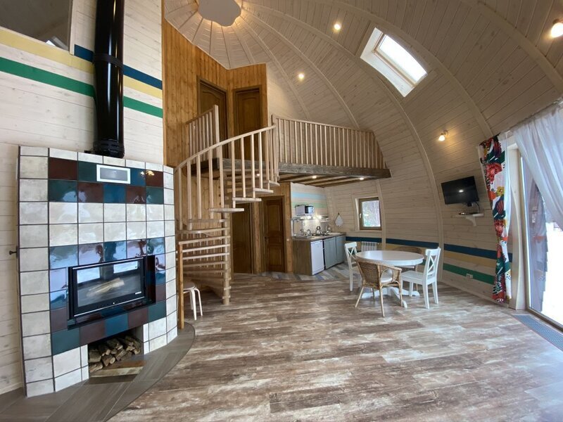 авг. 2021 г.Отдых в каравнеОчень хороший эко-отель, хоть и довольно дорогой. Хорошее местоположение вблизи леса. Видно, что над территорией потрудился ландшафтный дизайнер. Очень красиво сделана посадка деревьев, цветов и кустарников. Так же хорошее расположение беседок и мангалов. Жили 3 ночи в коттедже с камином. Очень классно и атмосферно. Есть кухня прямо в коттедже (разделен на 2 части независимых, но шумоизоляция хорошая. Камин хороший, качественный, топится хорошо, если приноровиться. Есть телек с триколором. Свой собственный санузел с душем. Только вот вместо двухспальной кровати - две одноместные сдвинутые вместе. Рядом с коттеджем гамак, очень клево, прямо под деревьями, можно хорошо порелаксировать. Очень удачно сделано озеленение возле коттеджа. Есть экотропа. Много интересных мест куда можно сходить и посидеть отдохнуть. Много качелей.Есть столы для настольного тенниса. Администрация доброжелательная, приятная в общении. Шикарная баня, заказали на 2 часа, но это мало. Лучше брать на 4. Покатались на лошадях, инструктор Тур хороший, но программа показалась сложноватой для новичка впервые севшего на лошадь. В общем очень понравилось, но теперь перечислю минусы для улучшения сервиса (вдруг администрация читает трипадвизор):