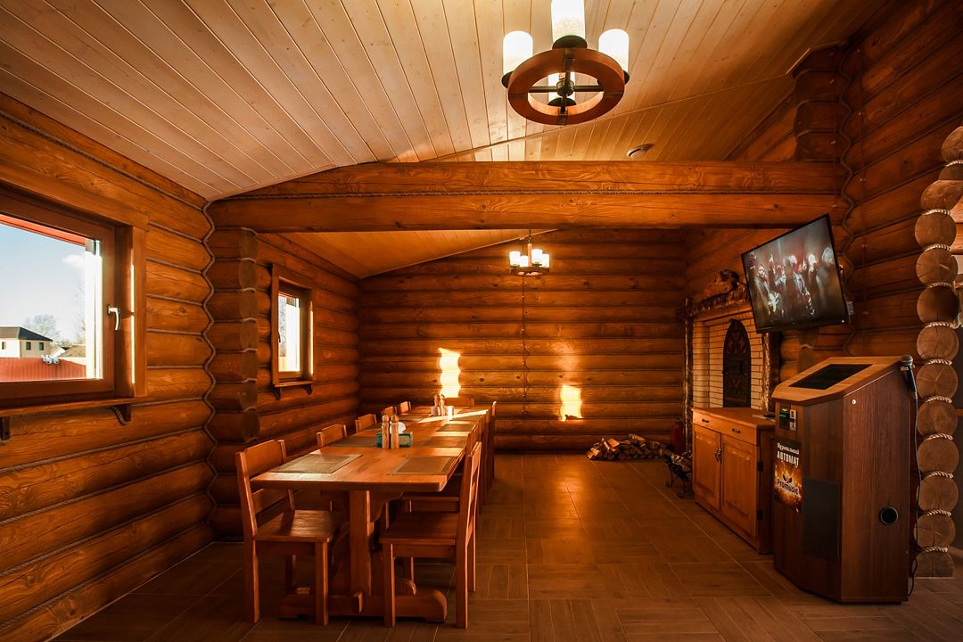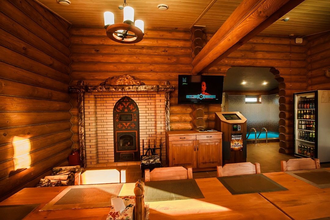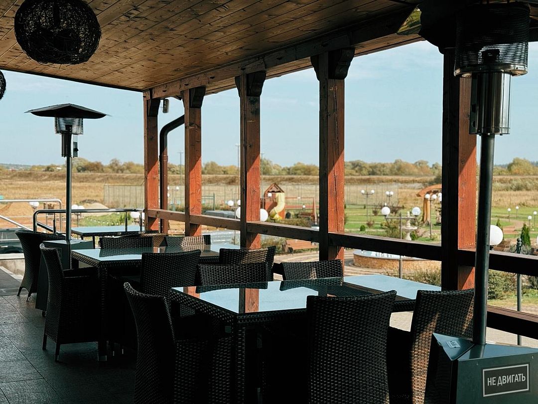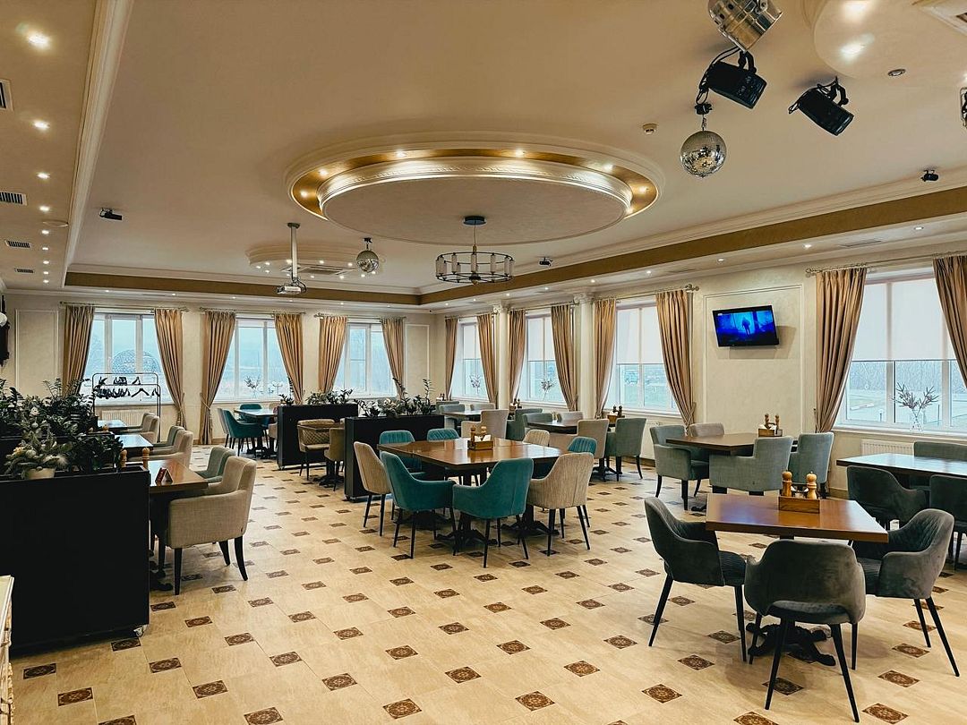 На первом этаже расположен ресторан, вмещающий до 130 человек. Меню разнообразно, здесь представлены блюда русской, кавказской и европейской кухонь. В теплое время года гости могут наслаждаться обедами в летнем кафе.
