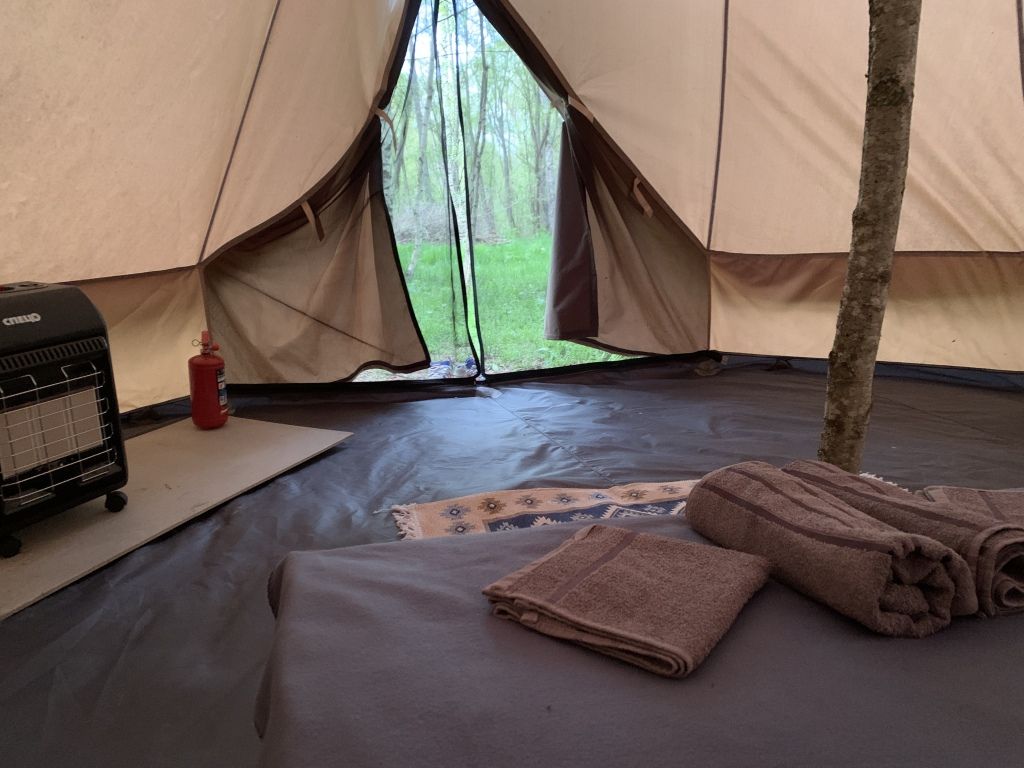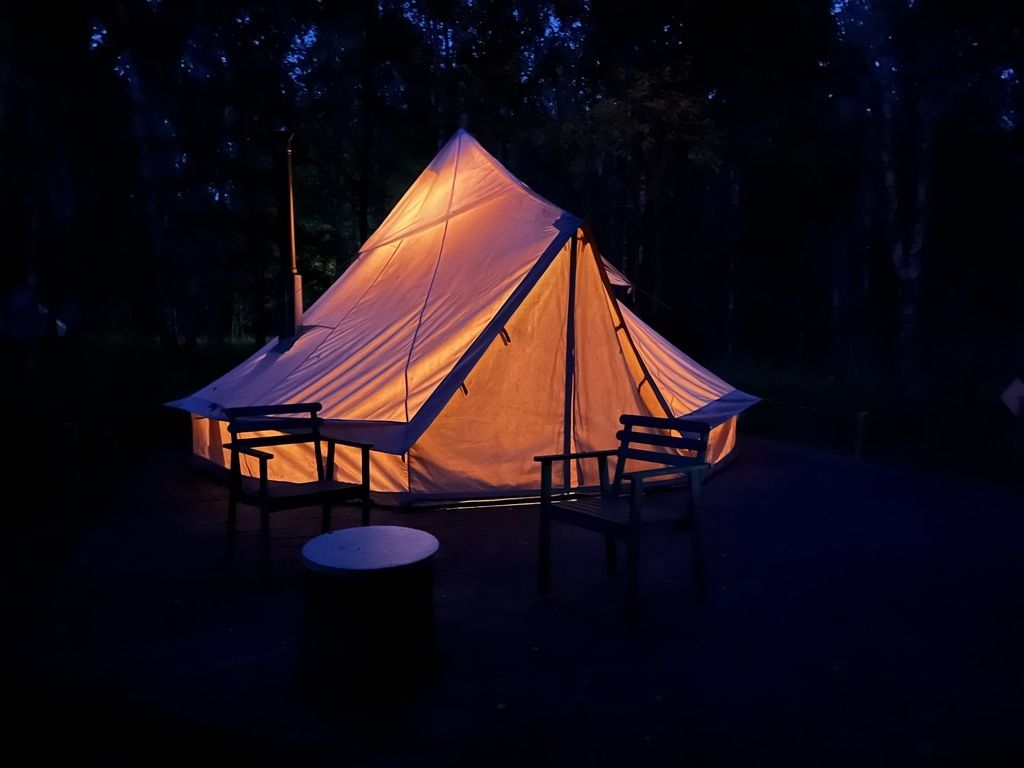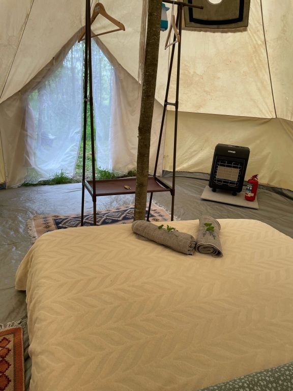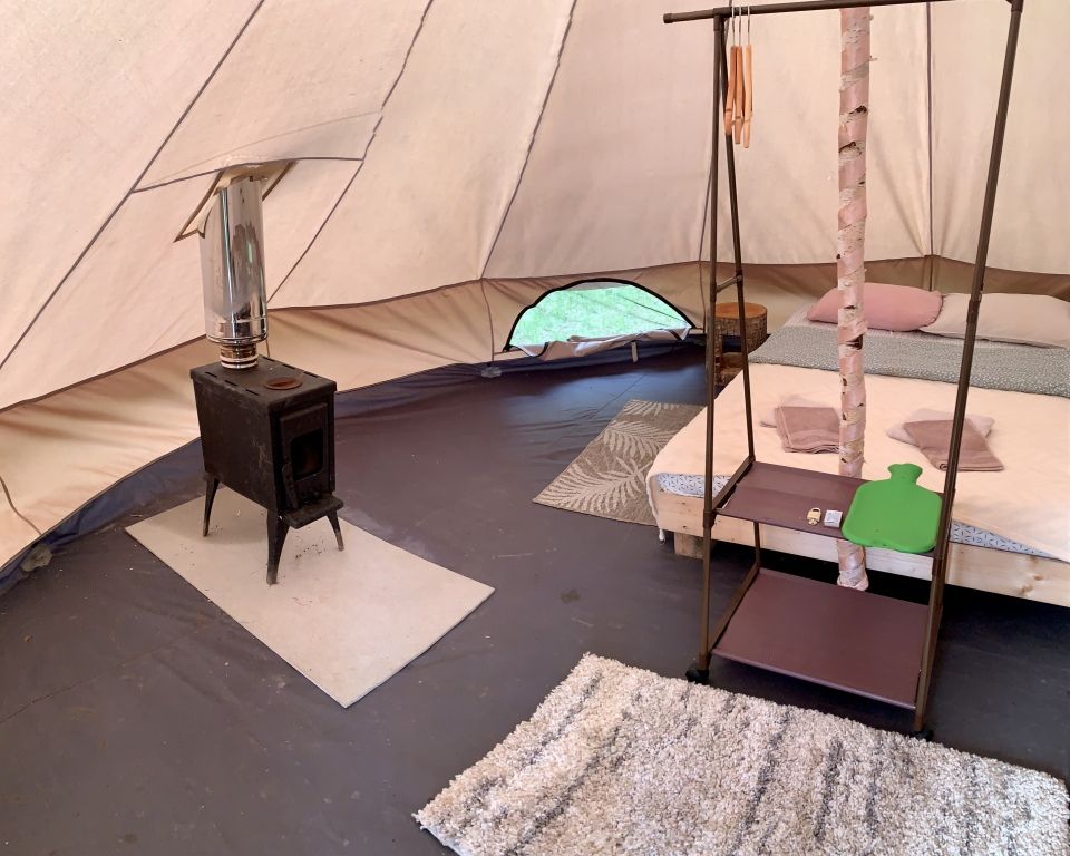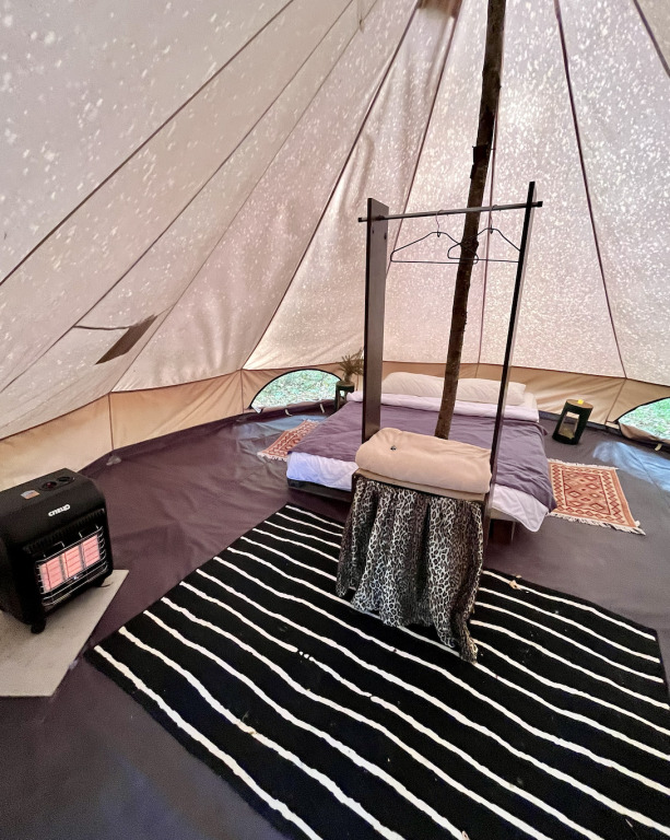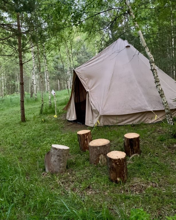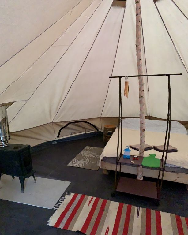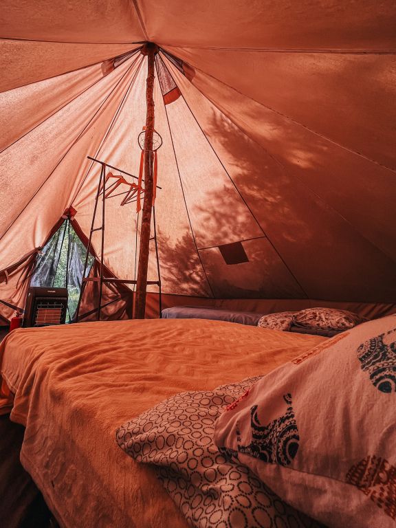 Каждый шатер оснащен кроватью для двоих + есть возможность поставить 1-2 спальных места, т.е макс. количество спальных мест в шатре — 4.